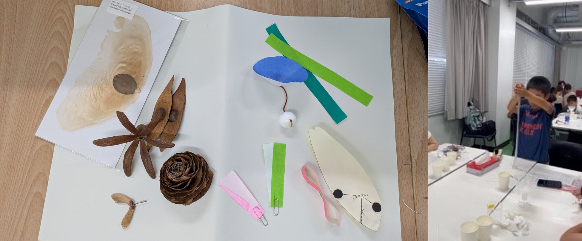 くるくる回って飛ぶタネ。植物の生き残りをかけた戦略をマネしてみたり、からだの仕組みを使った体験など、様々なワークショップを通じて学ぶことができます。また、現役の博士学生と体験しながら「考える力を身に着ける」スライム作りも体験いただけます。
