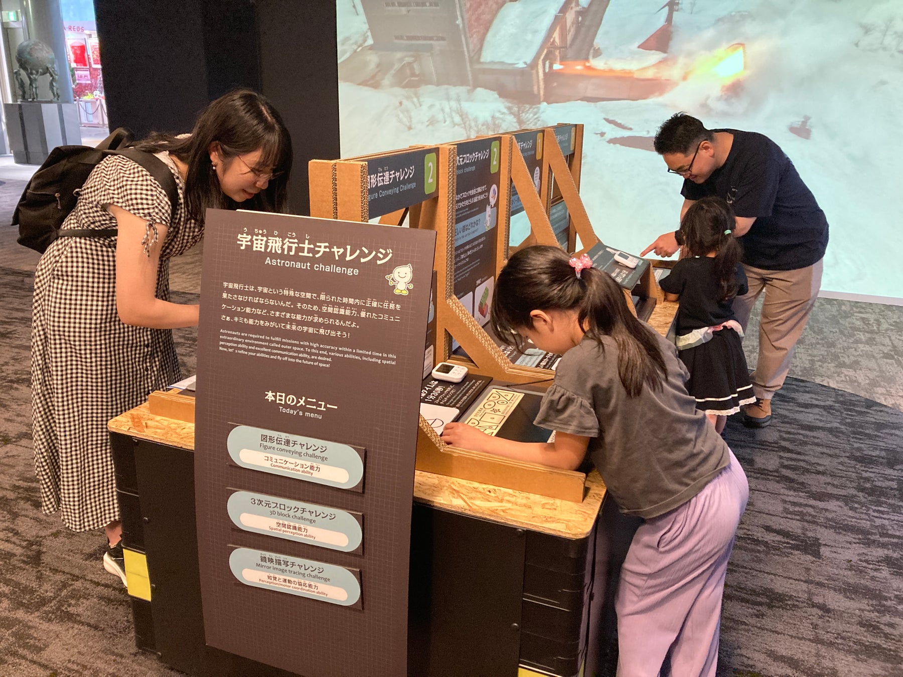 宇宙飛行士になるには、身体能力から協調性、リーダーシップなどが求められます。本チャレンジでは、2つのミッションに制限時間内に挑戦をしていただきます。