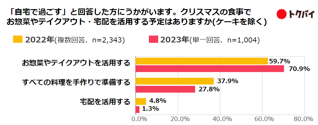 【トクバイ調査】2023年コロナの収束初のクリスマスは物価高の影響が大、キーワードは「おうちでコスパ&タイパ」!惣菜などの活用が昨年比10ポイント増
