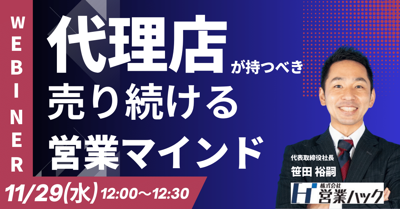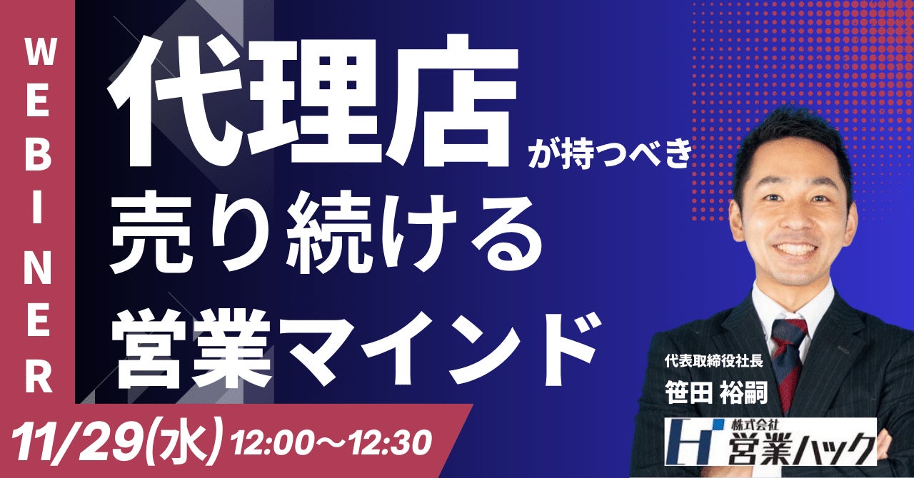 【緊急開催】代理店担当者必見!代理店営業が売上をあげるポイントを解説します!《11/29(水)12:00~無料オンラインセミナー》