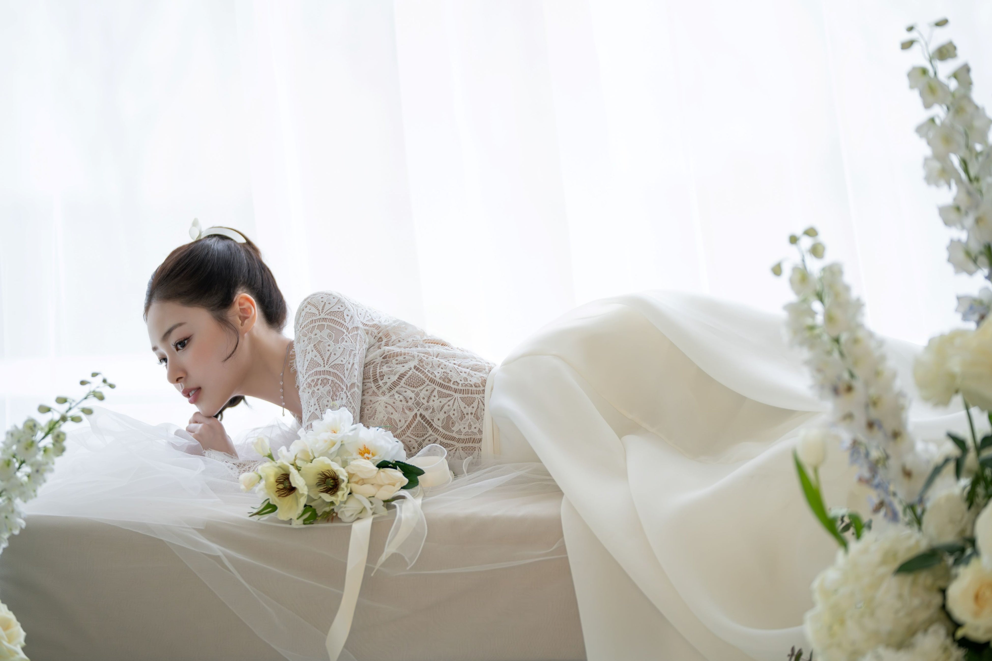 本場韓国のディレクションチームが監修した、洗練された時間と空間で描く、唯一無二のウエディングストーリー。アジアにおけるウエディングビジネスの専門グループ「WEDDINGBOOK」が、その知見とインスピレーションのすべてを結集。 クリエイティブディレクターDongji Kang(ドンジ・カン)氏の指揮のもと、光の入り方まで緻密に計算したスタジオ空間で、おふたりの美しさと魅力を引き出す撮影を。