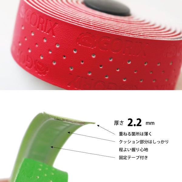 地面からの衝撃を押さえるクッション性のあるグリップで発色性の高い人気のカラー8色から選べるロードバイクのバーテープです。