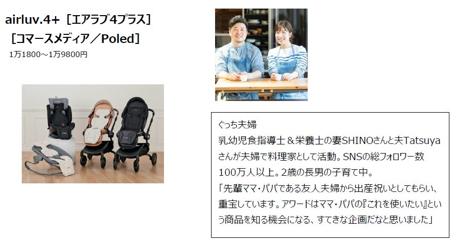 園児とママ・パパの情報誌「あんふぁん」「ぎゅって」を発行する株式会社こどもりびんぐ(所在地:東京都千代田区、代表取締役︓藤田基予)では、毎日の家事や、子どもとの時間をハッピーに過ごすための商品・サービスのNo.1をママ&パパの投票で決定する年に一度のアワード「ベストサポーター大賞」を実施。このたび、全国から1794票の投票結果がまとまり、全5部門(食品/日用品・雑貨/ベビー・キッズ/家電/サービス・コンテンツ)の受賞商品・サービスが決定しました。ベストサポーター大賞初のアンバサダーは、SNSの総フォロワー数100万人以上の料理家「ぐっち夫婦」。審査員と、授賞式ではプレゼンテーターを務めていただきました。