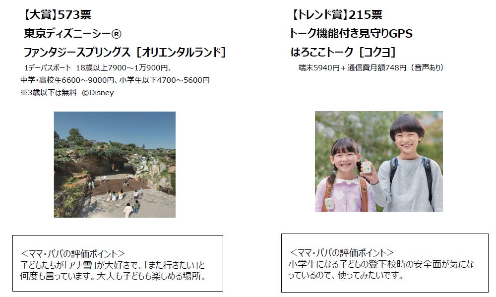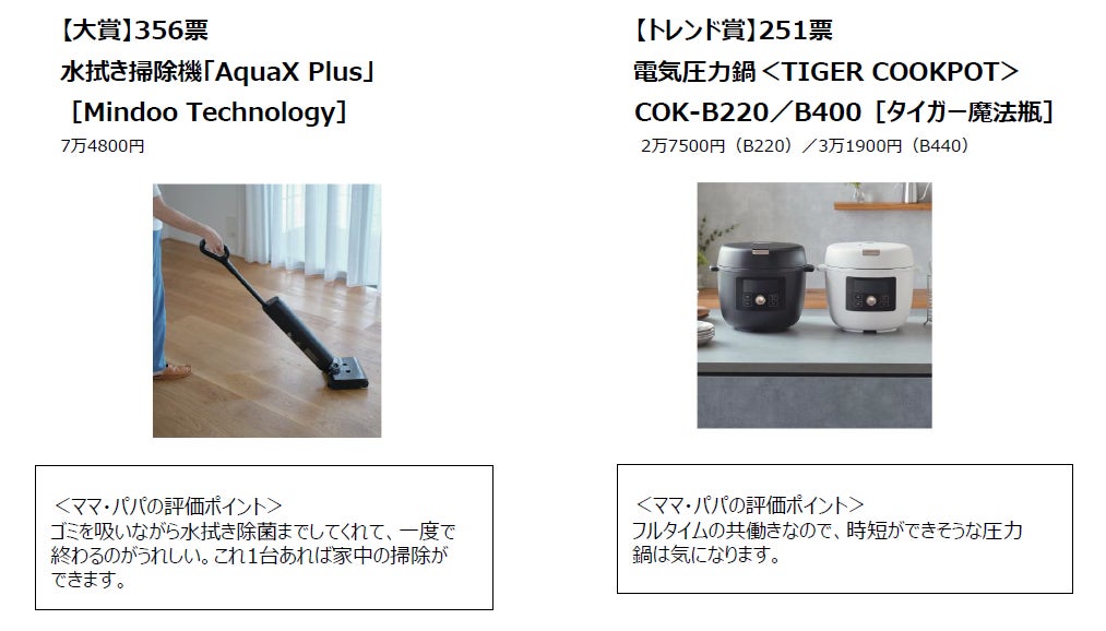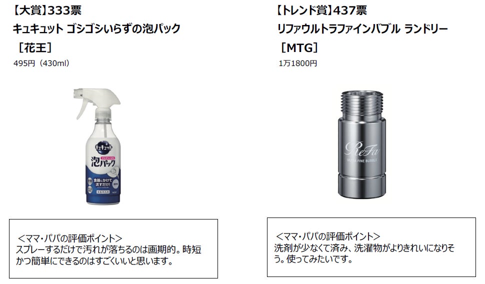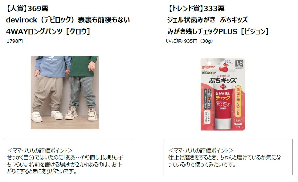 ※集計方法:2025年9月2日~9月30日、0~6歳の子どもを持つママ・パパを対象にWeb投票を実施。有効回答数1794。部門ごとに「使ってみたい」「実際に使って重宝している」商品(大賞)と、「使ったことがないが、使ってみたい」商品(トレンド賞)を決定。