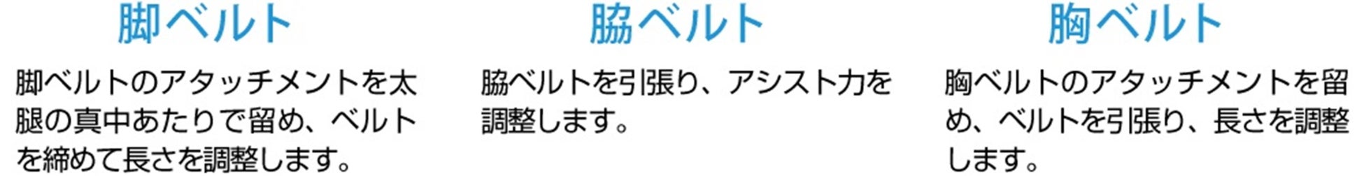 背部から太腿にかけて高反発ゴムを配置しています。ゴムの張力で持ち上げ動作に必要な腰や背面をサポートします。無電力で充電不要のため使用シーンを選ばずお使いいただけます。