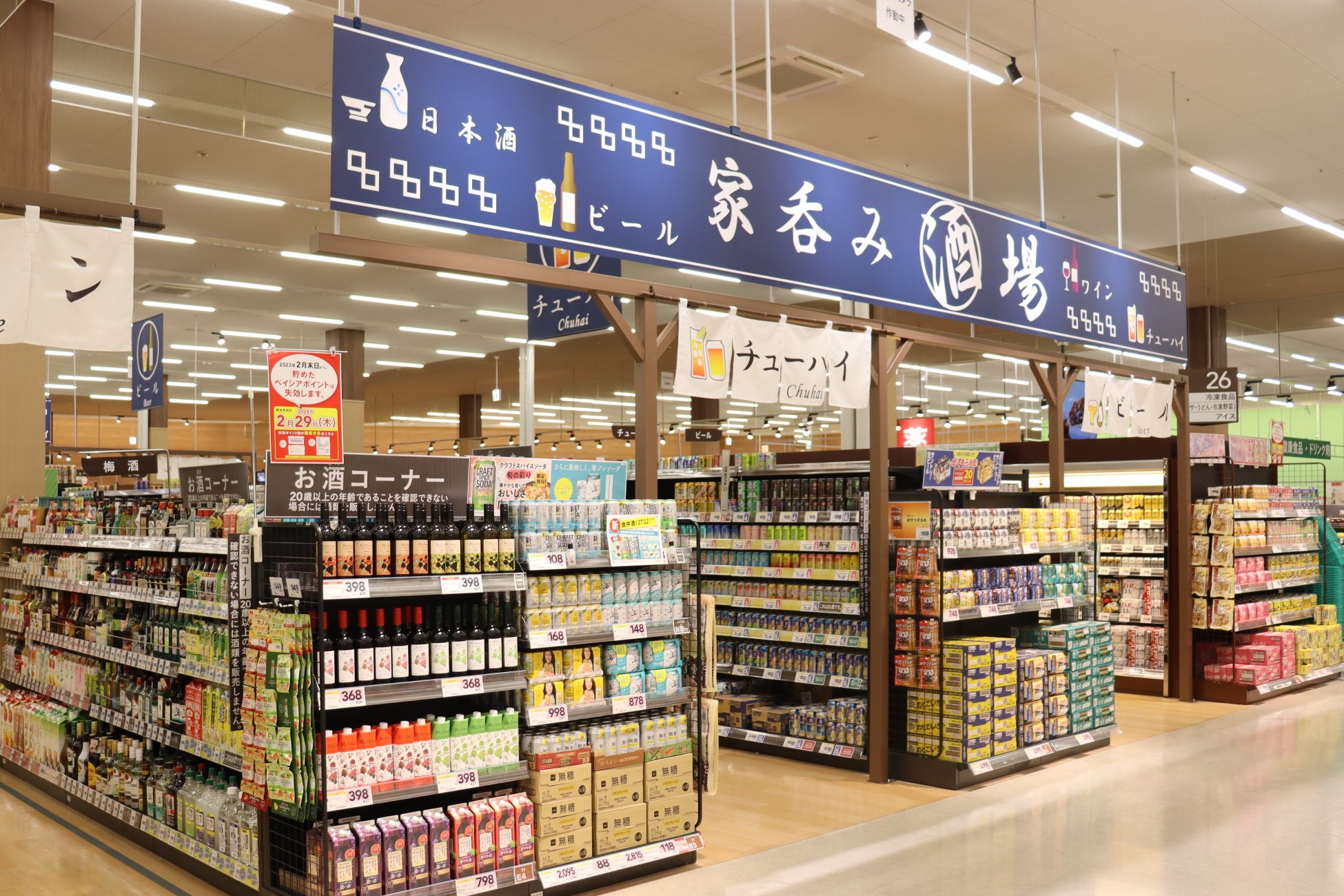 一般食品では、当社の強みである飲料や即席麺などを豊富に品揃えするほか、地域特性を踏まえチーズやヨーグルトなどの日配品や和菓子などで日本各地から選りすぐった商品を品揃え。日常的なアイテムからこだわりの商品まで、幅広くご提供します。また、若年層・単身世帯の方も多いことからチューハイやワインなどの酒売場を強化し、冷凍食品では、レンジ調理が可能なチキンおかずシリーズをはじめとした「Beisia Premium」を集合展開し、時短・簡便ニーズにお応えする商品をご提案します。