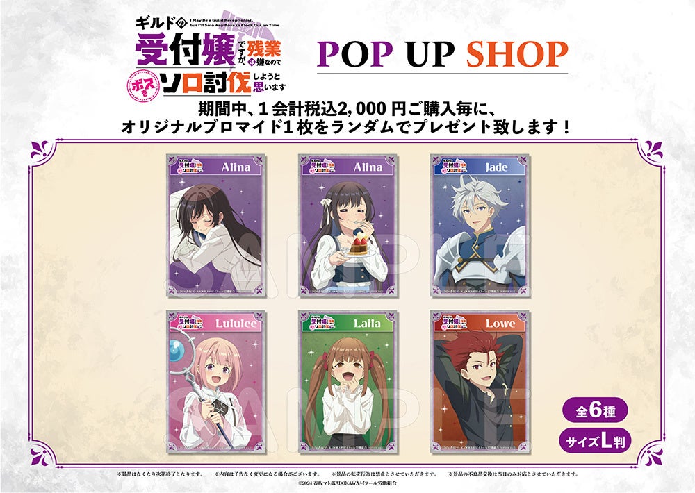 イベント名:TVアニメ「ギルドの受付嬢ですが、残業は嫌なのでボスをソロ討伐しようと思います」POP UP SHOP