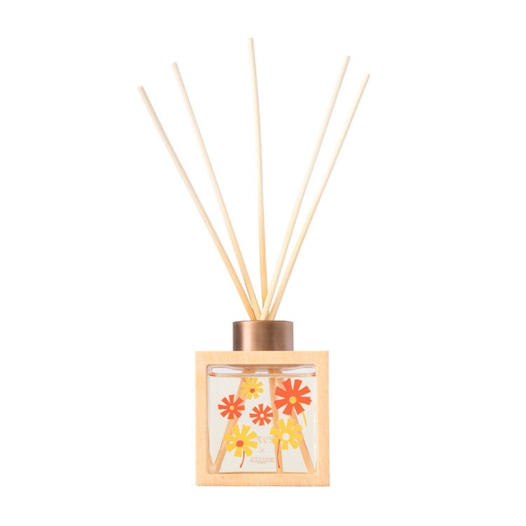 アデリアレトロのキュートなデザインからインスパイアされた、3種類の香りを楽しめるリードディフューザー。リアルウッドのフレームが花モチーフを引き立て、お部屋のアクセントに。