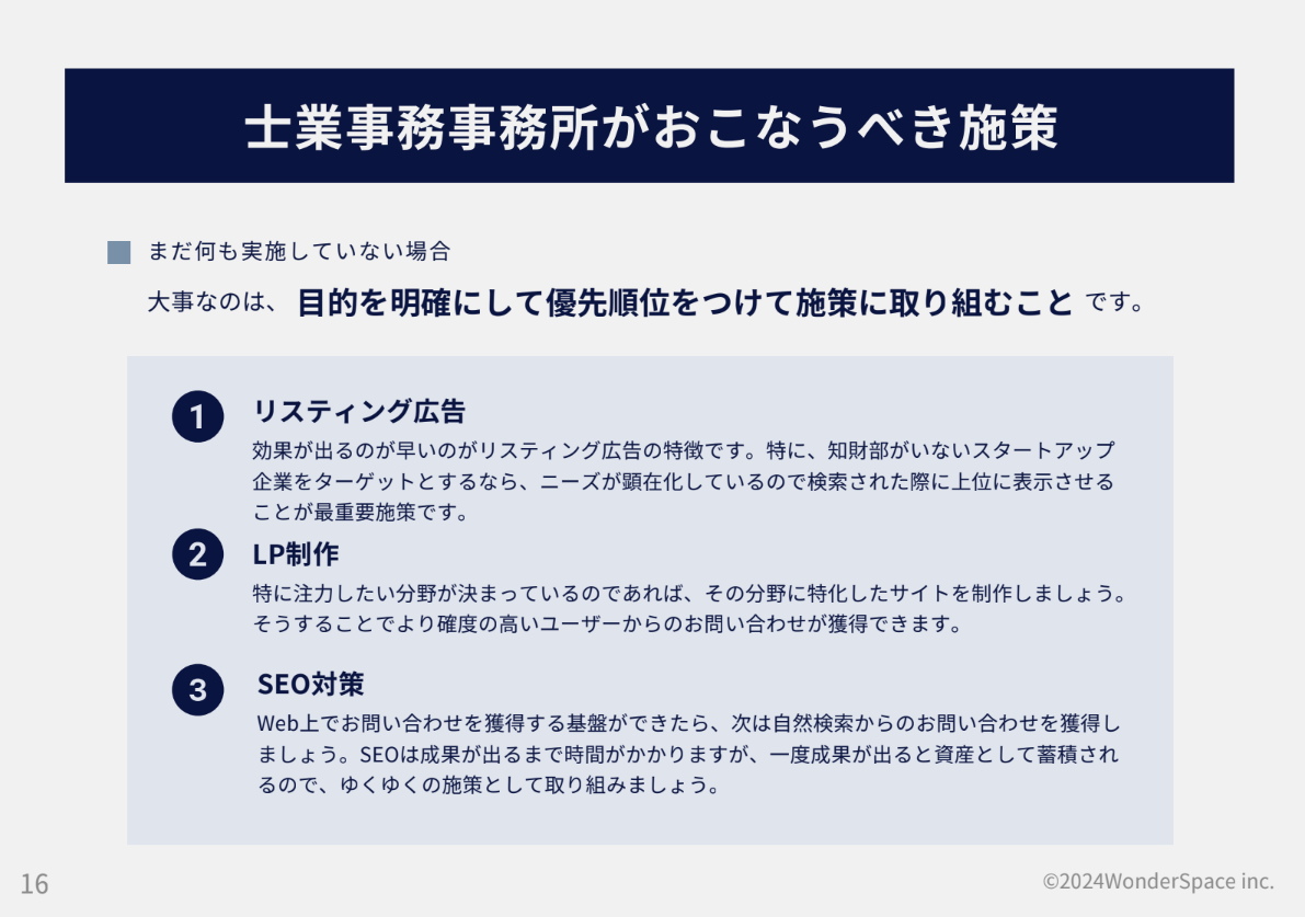 大手法律事務所をはじめ、数多くの士業事務所様のマーケティング支援を行っている中で得た知見をもとに