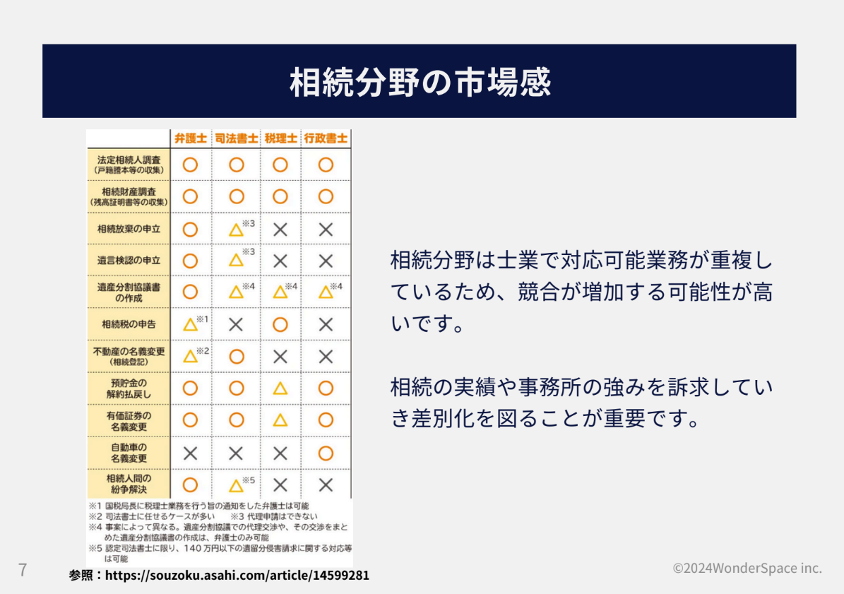 本資料では「相続の市場と近年の傾向」「士業事務所が取り組むべきWebマーケティング施策の種類」