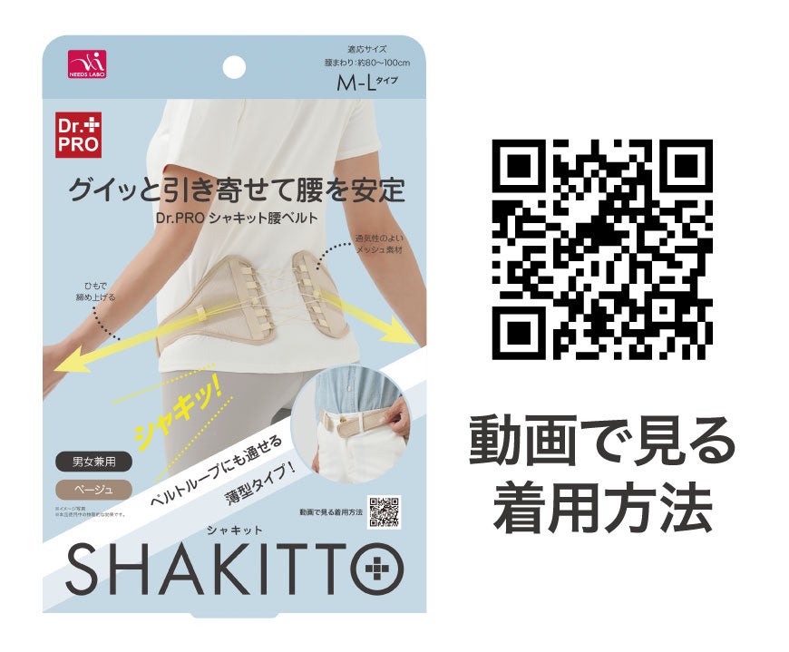 株式会社ニーズ/株式会社サンファミリー(本社:兵庫県加古川市、代表取締役:本岡勝則)は、「Dr.PRO シャキット腰ベルト ベージュ」3,278円(税込)を3⽉3⽇(月)より発売開始しました。