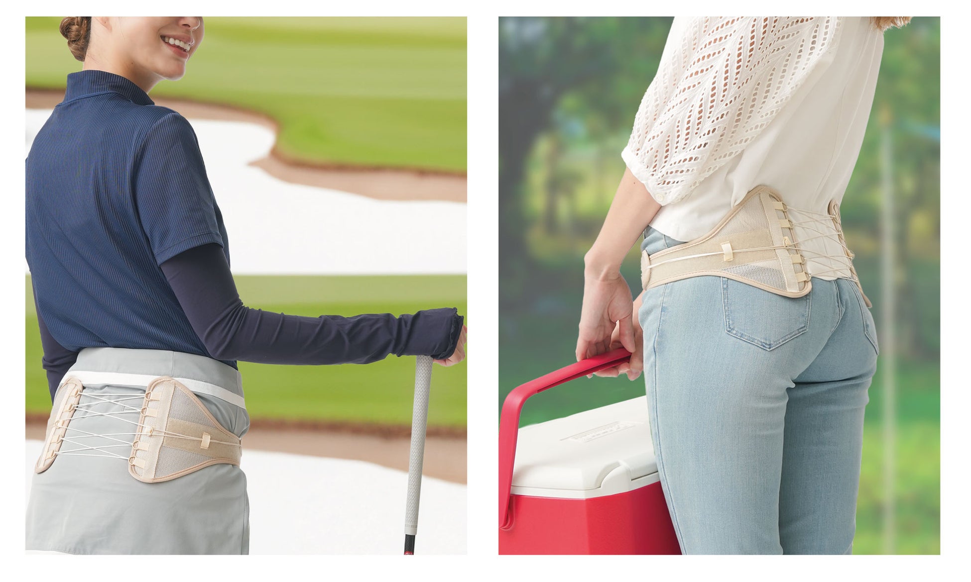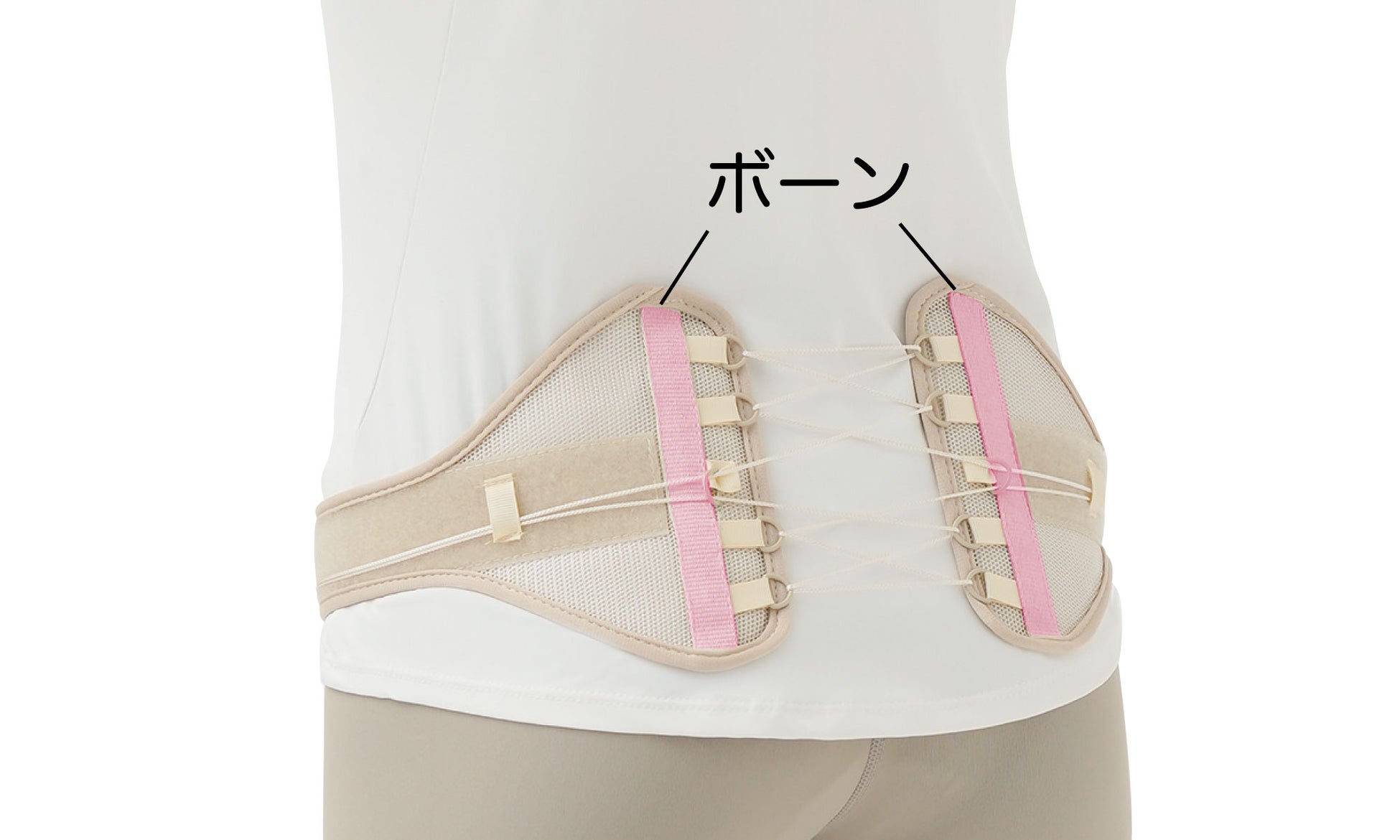 弾力のある2本のボーンが腰のラインにぴったりフィットし、支えてくれます。骨盤をしっかり固定することで腰がラクになり、姿勢をサポート!