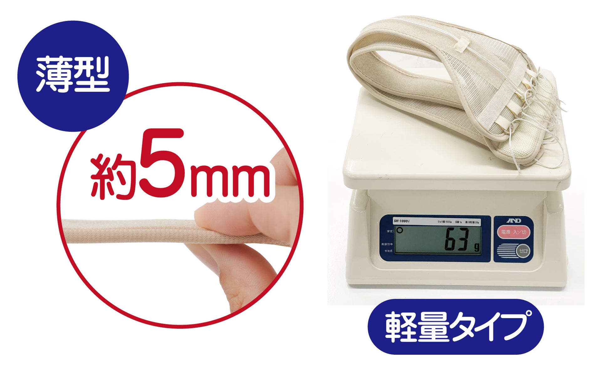 約5mmの薄型デザインで目立たず、服の下に着用してもアウターにひびきにくい!