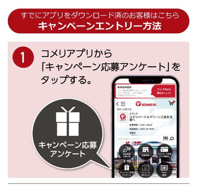 期間中、コメリアプリからのエントリーと、コメリカード、アクアカード、コッコPayにて、クレジット払いまたはプリペイド払いをしていただくと、お買上げ金額累計税込1万円を1口としてご応募いただけます。
