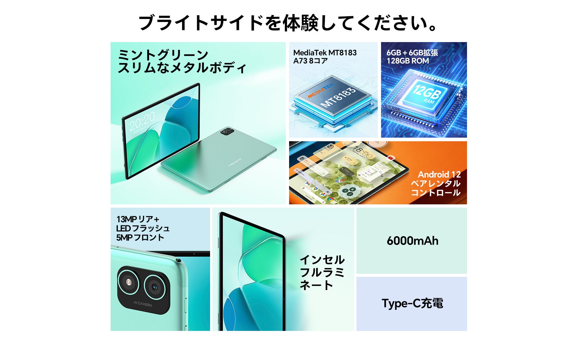 ポイント:10インチ / Android 12 / 12GB RAM(6+6拡張)+128GB ROM+1TB TF拡張 / TDDI IPSディスプレイ / 5G WiFiモデル / GPSサポート / 3.5 mmヘッドフォンジャック