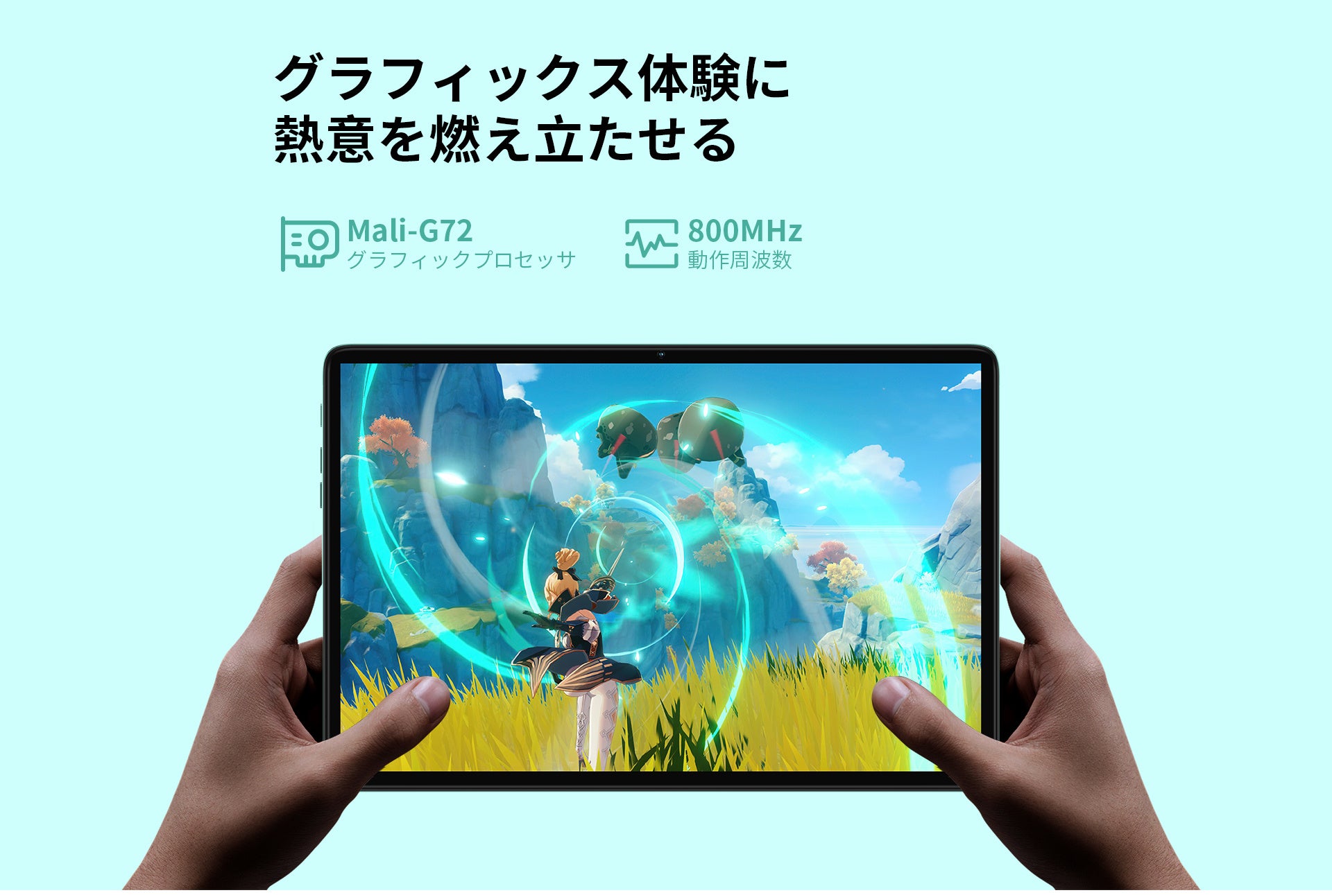 メディアテックMT8183オクタコアプロセッサには、4つの高性能A73コアと4つの高効率 A53 コアが搭載されており、Mali-G72 MP3マルチコアグラフィックスプロセッサと連携して、タブレットのエクスペリエンスをよりスムーズかつ高速にします。