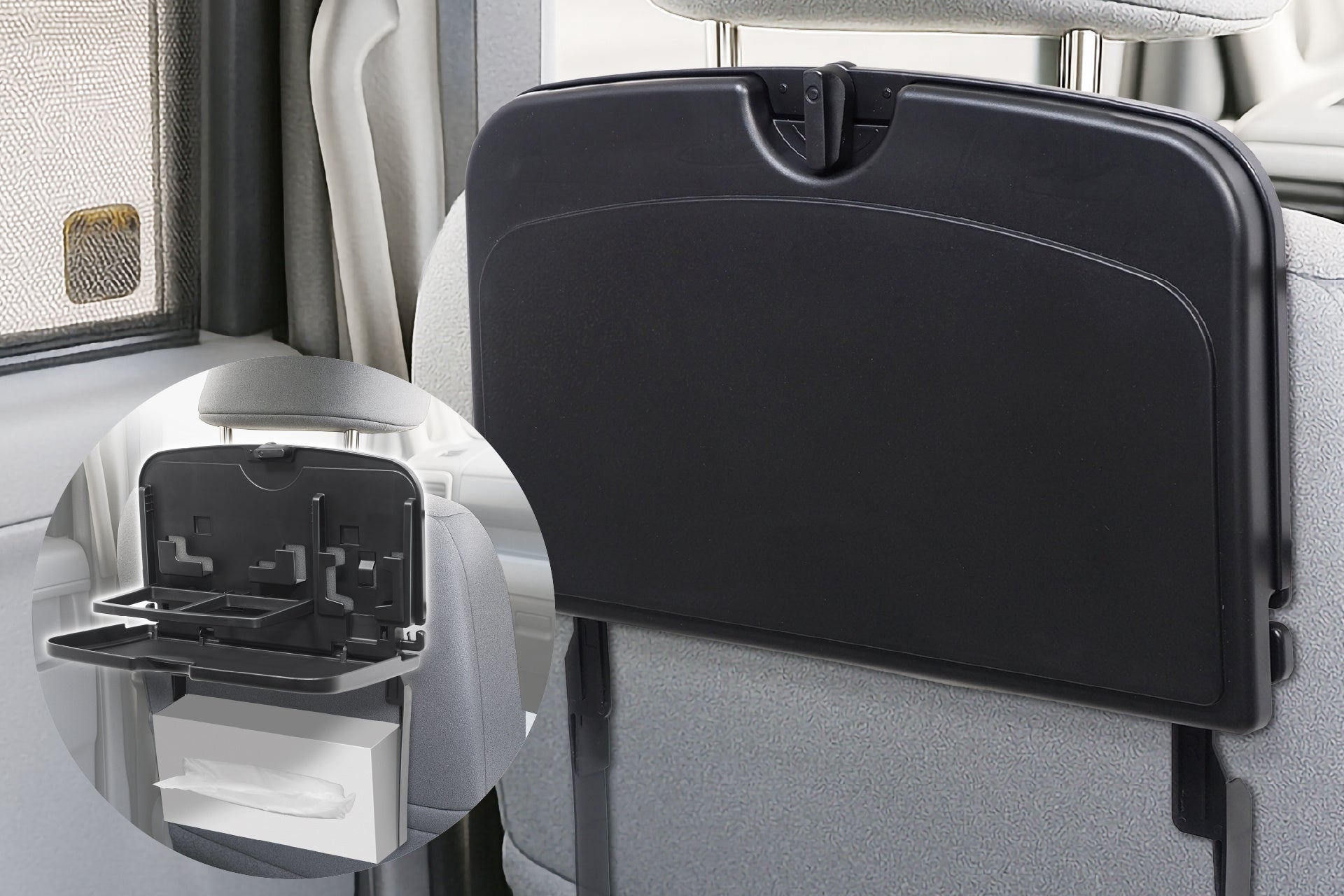 後部座席にインストール!ファミリー歓喜の「くつろぎ空間」がパパッと実現。スマホにドリンク、ティッシュケースもなんでもこい!