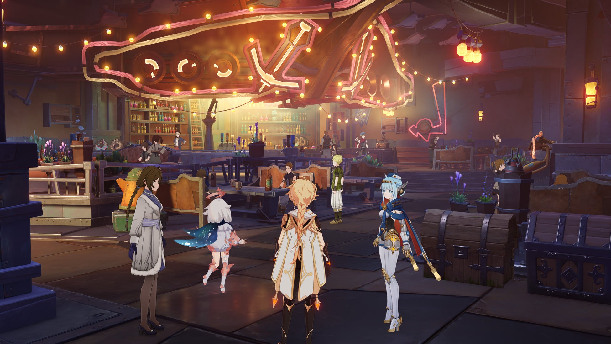 多種多様な新コンテンツが実装され、キャラクター、ストーリー、オープンワールドの要素がさらに融合し、より没入感のある体験をお届けします。「Luna Ⅰ」で登場する新キャラクターは、オープンワールドでそれぞれ特有のインタラクトを持ち、その個性や才能を表現します。ラウマが拠点の周囲を歩くと、霜月の子の民は彼女に向かって敬意を込めた挨拶をします。ラウマは動物とも特別な絆を持っており、冒険中は様々な生き物から治療を施されたり、食料や鉱石などを渡されたりします。ライトキーパーは、持ち歩いているランプでワイルドハントの接近を予見する能力を持っていますが、ワイルドハントの謎の囁きを理解することもできます。また、新たな強敵「ボコボコダック」の作り手であるアイノがこの巨大な機械と会話するときは、ユニークな会話も楽しめます。さらに、新たなコンテンツ「集いの場」では、仲間たちの日常生活の一端を覗くことも可能です。ラウマやフリンズが語る伝説に耳を傾けたり、イネファやアイノのほのぼのとした暮らしを見守ったりと、特別なひと時を過ごすことができます。