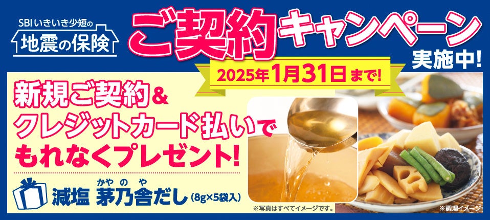 【SBIいきいき少短】地震補償保険にクレジットカード払いにて新規ご契約いただいた方にもれなく「減塩 茅乃舎だし󠄀」をプレゼント!