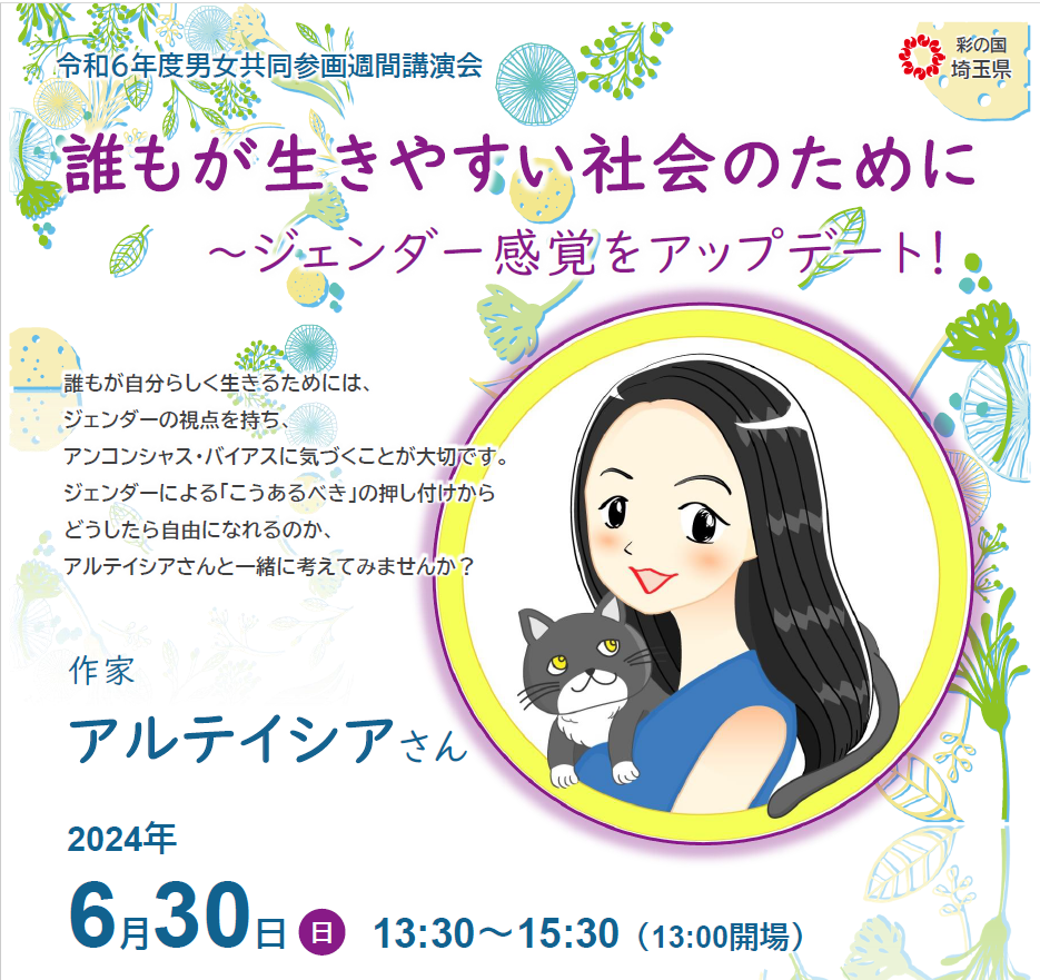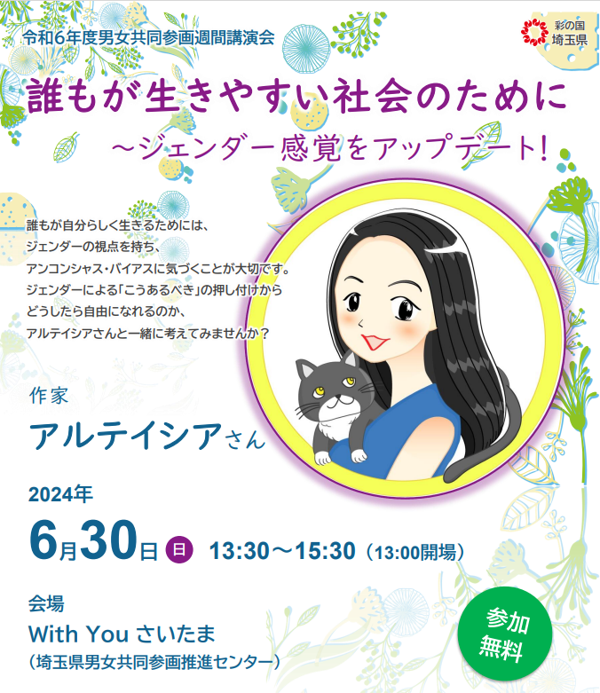【埼玉県】男女共同参画週間講演会「誰もが生きやすい社会のために ~ジェンダー感覚をアップデート!」の参加者募集