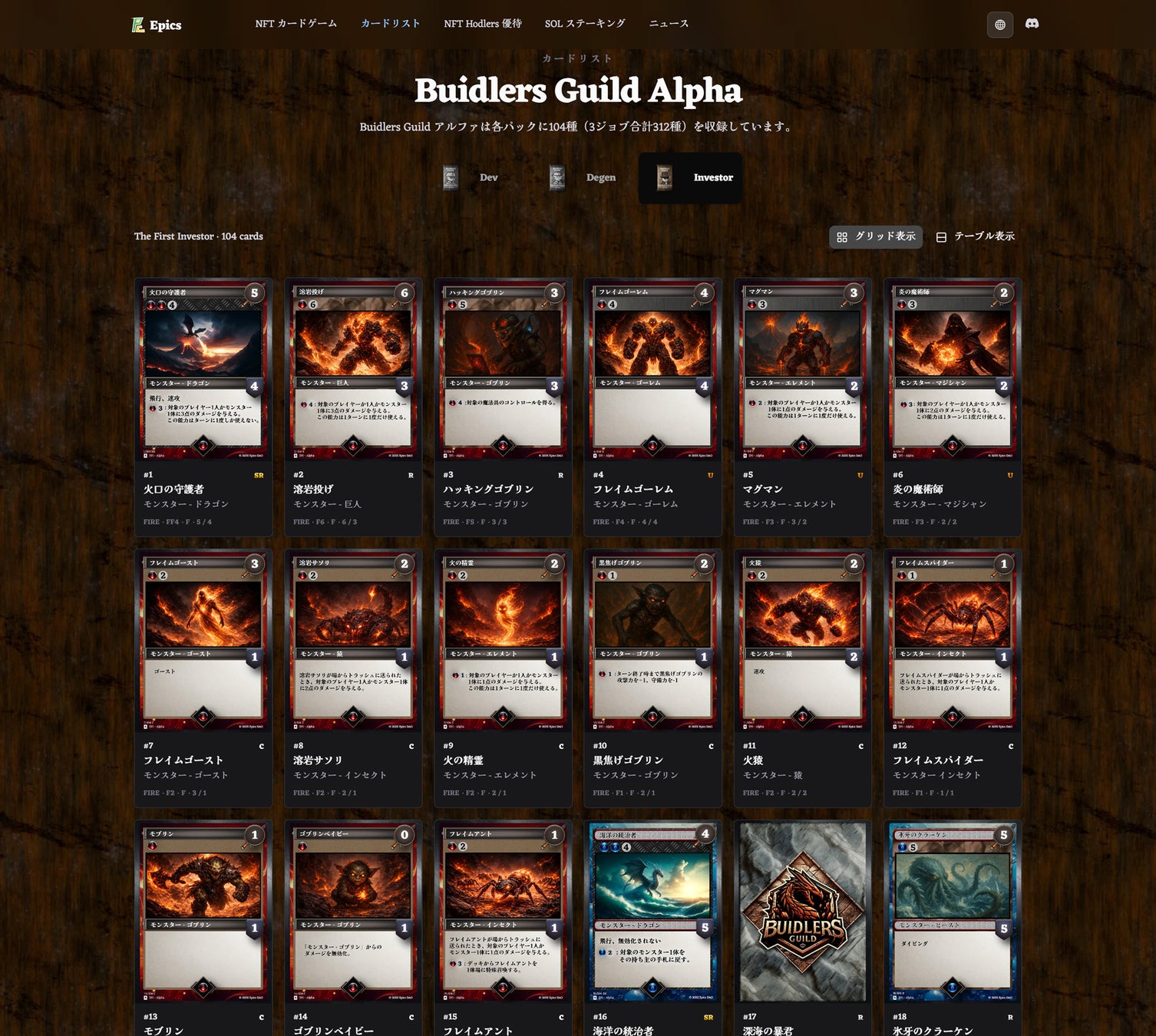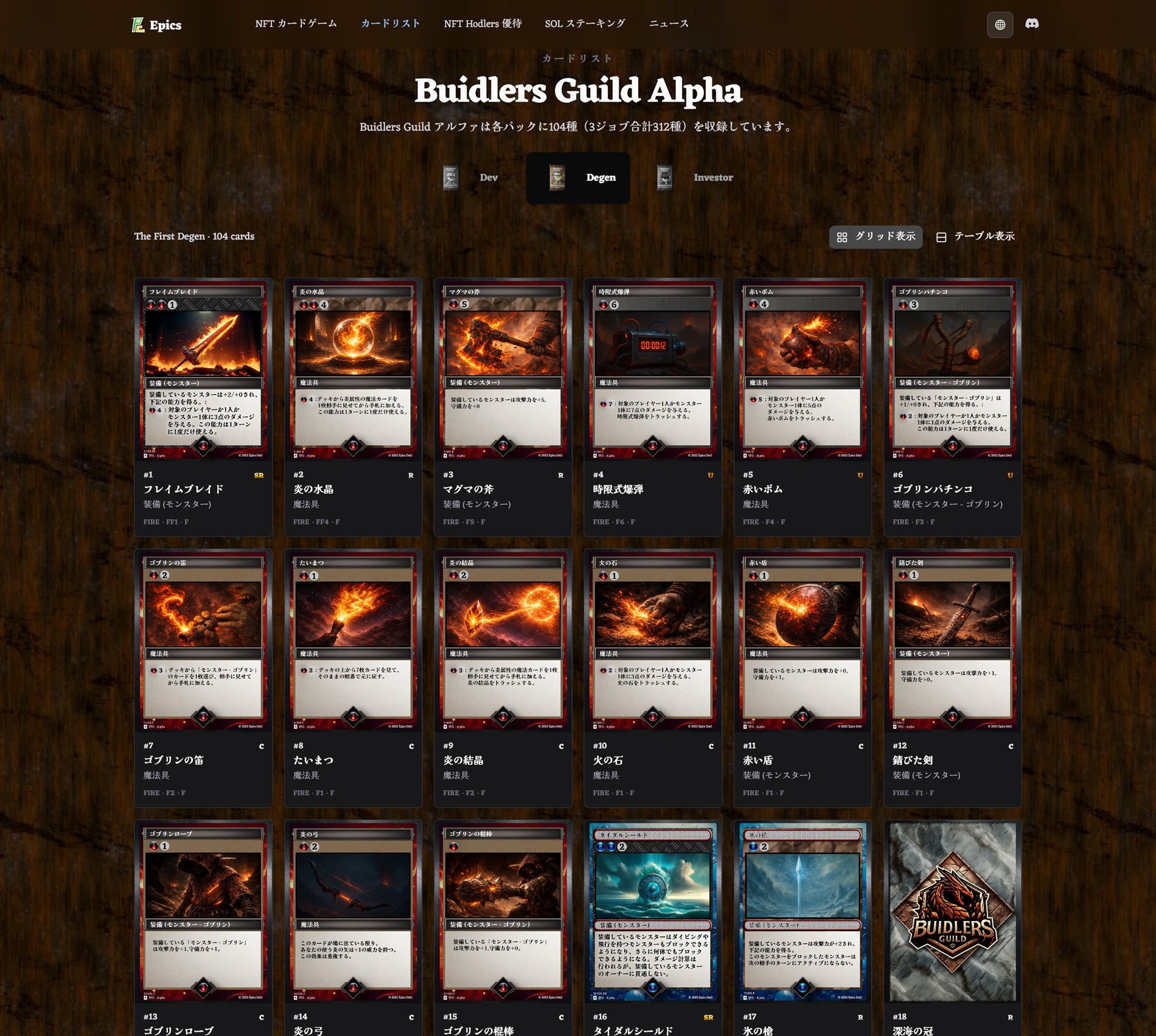Buidlers Guild NFTカードリスト公式ページ: https://epics.dev/ja/nft-card-list/