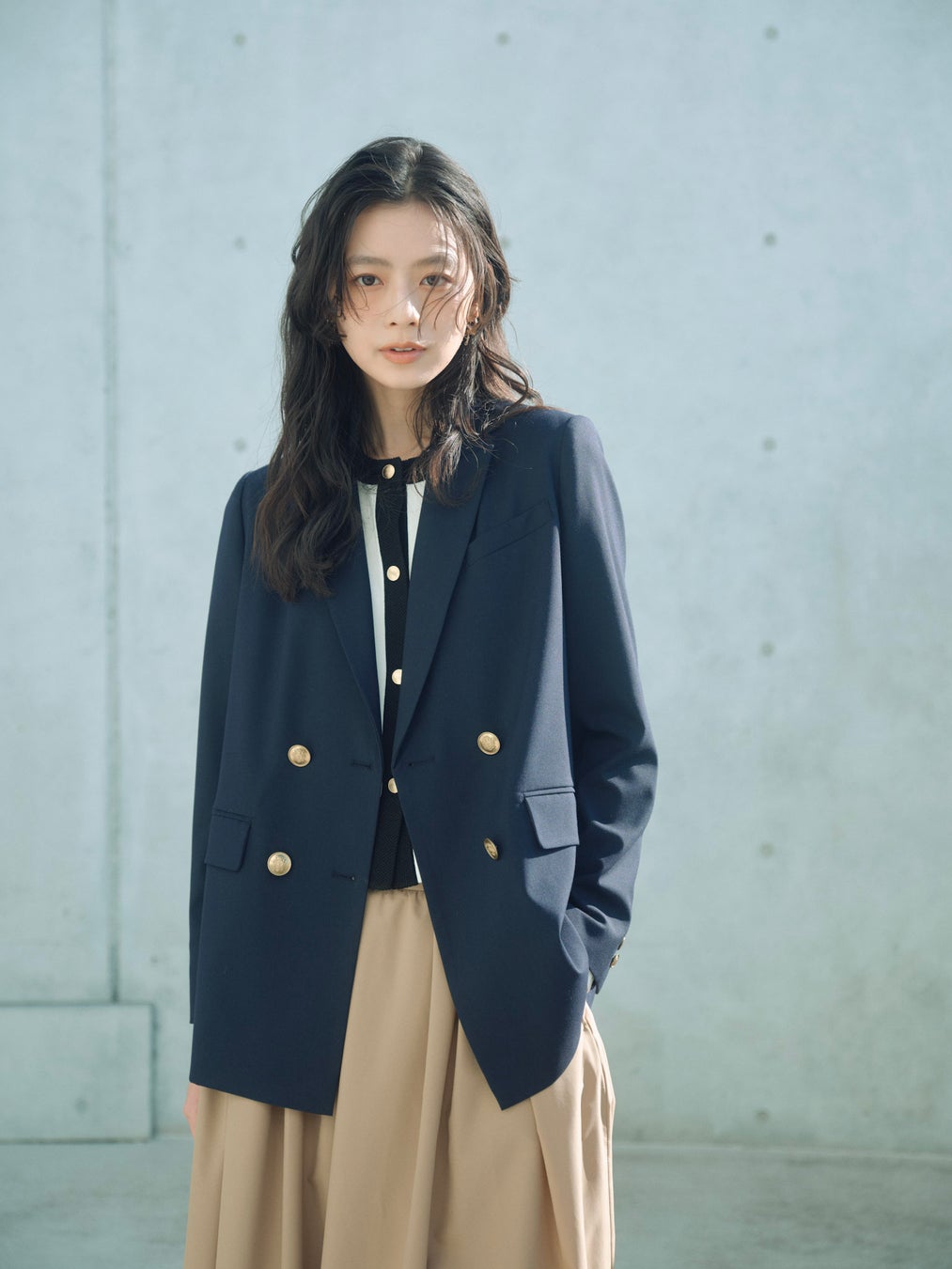 ジャケットの品格を保ちつつ、カーディガンのように気軽に羽織れる万能な一着。