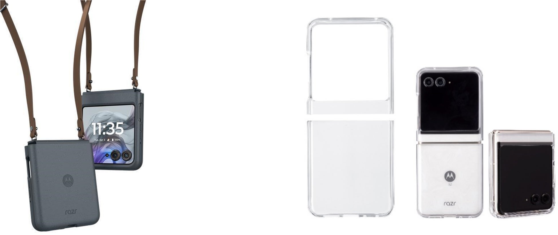 「motorola razr 50d M-51E」発売に併せ、2種類の専用ケースを発売いたします。環境に配慮したヴィーガンレザーを使用し、持ち運びに便利なショルダーストラップを付属した「Premium Case」はモトローラ社製純正ケースで、ドコモ限定で取扱いいたします。「トライタンハードケース」はリサイクル素材を最大50%含む耐久性と安全性を兼ね備えたコポリエステル樹脂Tritan™ Renew※3を使用し、高い保護性能と薄型スリムな形状の両立を実現しています。詳しくは、ドコモオンラインショップをご確認ください※4。