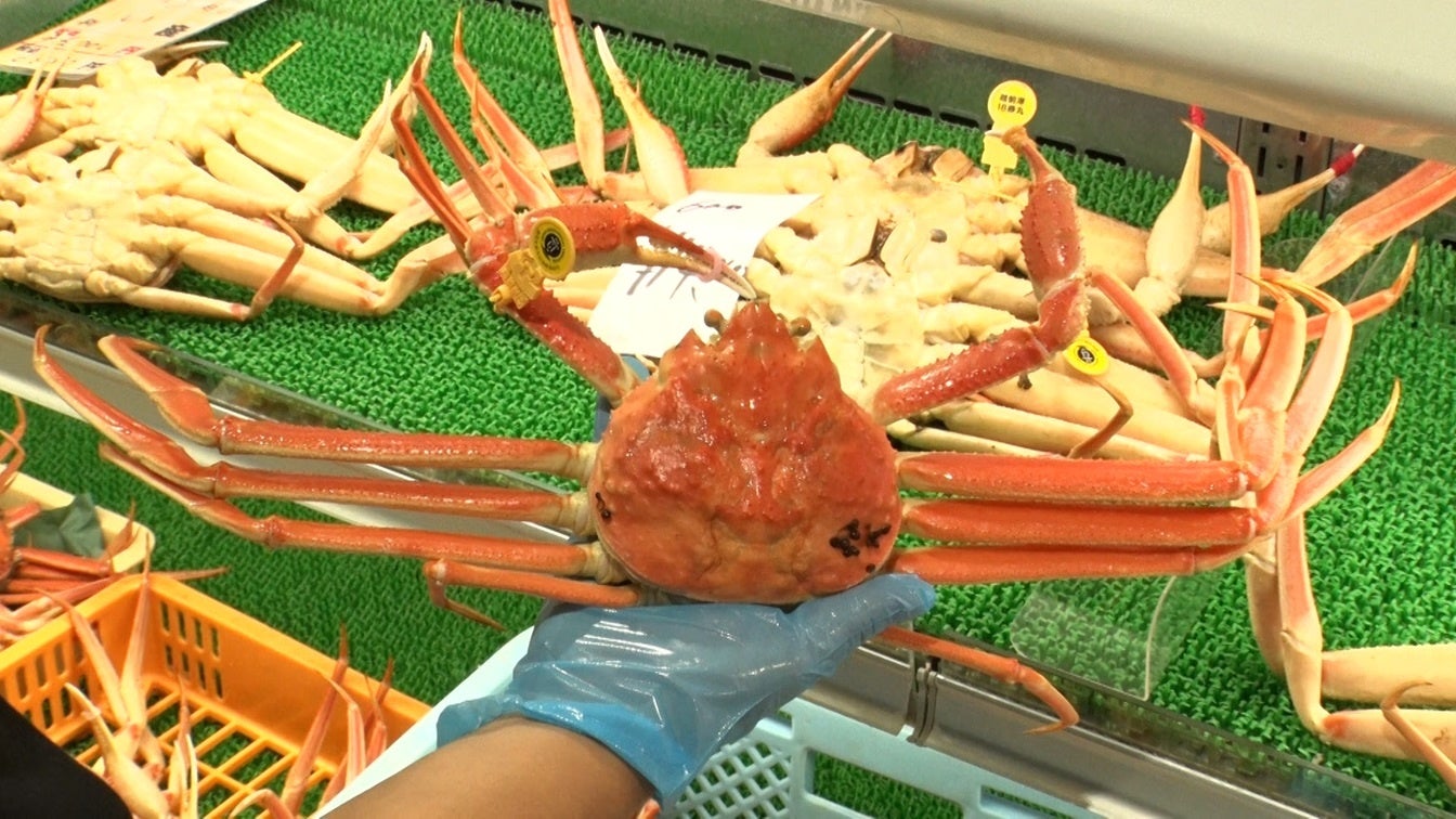 越前ガニが美味しいシーズンということで、朝4時から市場へ向かうとセリの真っ最中!活気のいい声が響き、立派なカニをあちこちで見ることができた塚地武雅(ドランクドラゴン)はご厚意で試食させてもらえることに!