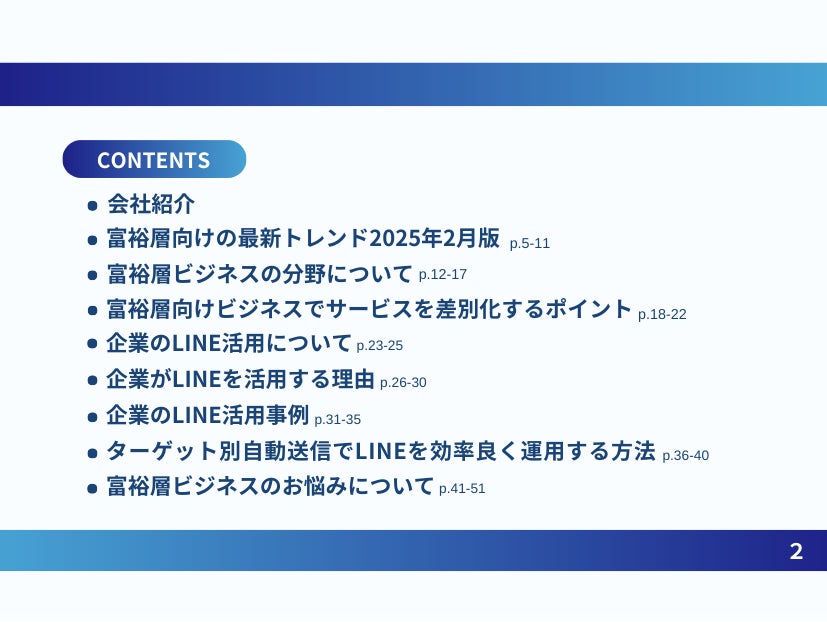 株式会社ベクトル(本社:東京都港区、代表取締役会長兼社長:西江 肇司、東証プライム:6058)の子会社であるOwned株式会社(東京都品川区、代表取締役社長、石井翔、以下「当社」)は、「富裕層向けビジネス|LINEを活用したサービスの差別化方法を最新トレンド・事例と共にまとめたレポート」の2025年2月版(全51ページ)を無料公開いたしました。