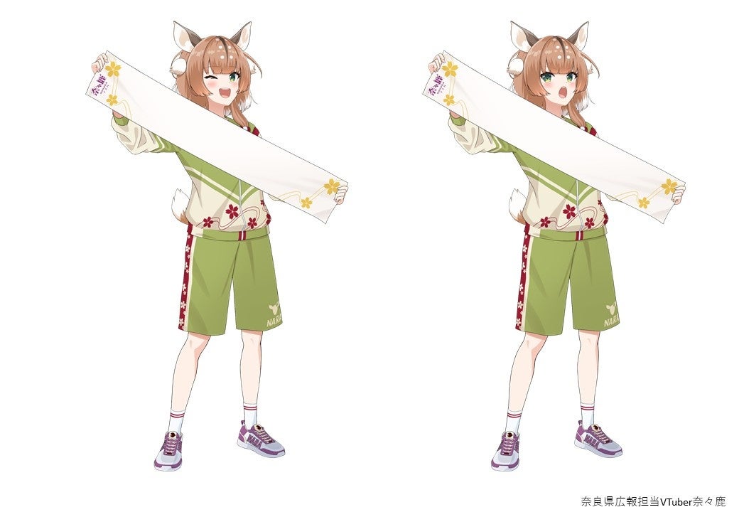 これらのイラストは、奈良県の20代~30代の職員13名で構成される「VTuber奈々鹿活用推進プロジェクト」のメンバーの意見を取り入れながら令和8年度全国高等学校総合体育大会奈良県実行委員会が制作したもので、今後の大会広報やPR活動等に活用されます。