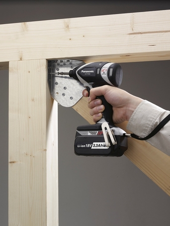 「充電インパクトドライバー」は、リチウムイオン18Vタイプを新たに開発。パナソニック電工従来品の14.4Vタイプに比べ、1回の充電でネジ締め・穴あけの作業が多く行えます。また、大径ボルト締め付けなどのより負荷の高い作業も可能。さらにパワーがアップしても本体は、軽量でコンパクト。取り回しがラクに行えます。