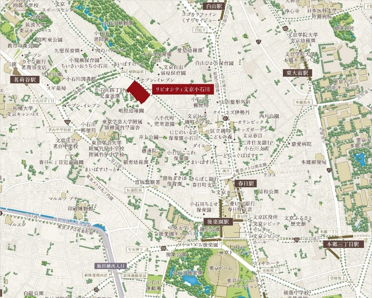 都営三田線・大江戸線「春日」駅徒歩11分、都営三田線「白山」駅徒歩10分