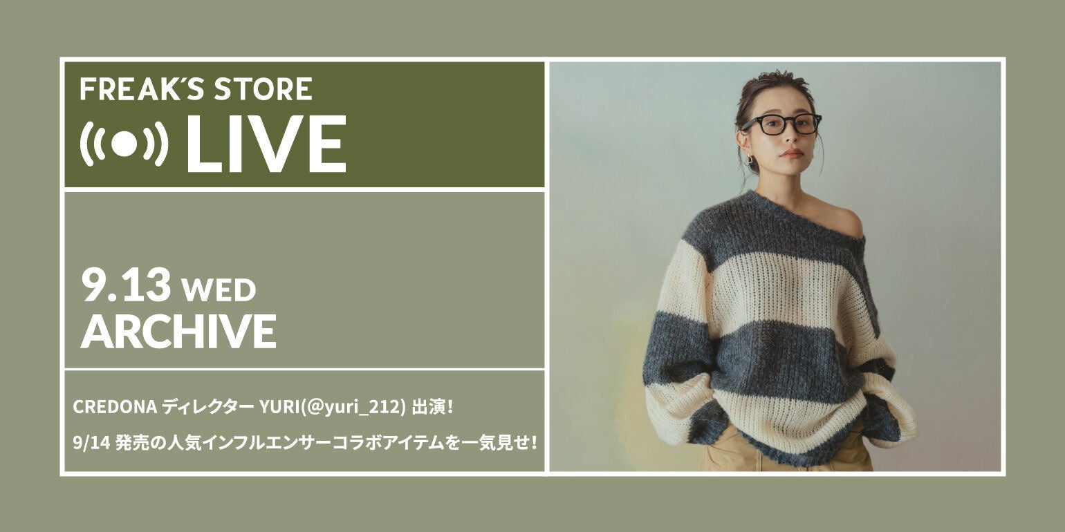 「時代に左右されないタイムレスで日常に寄り添うエフォートレスなファッション」をコンセプトに、 クリエイティブディレクターYURI氏の抜群のファッションセンスが詰まったこだわりのラインナップ。 FREAK'S STOREとの初タッグとなる今回のPOPUPでは、FREAK’S STORE限定のカラー別注アイテムも特別にご用意! その他、 この秋に着たいラインナップを多数展開します。