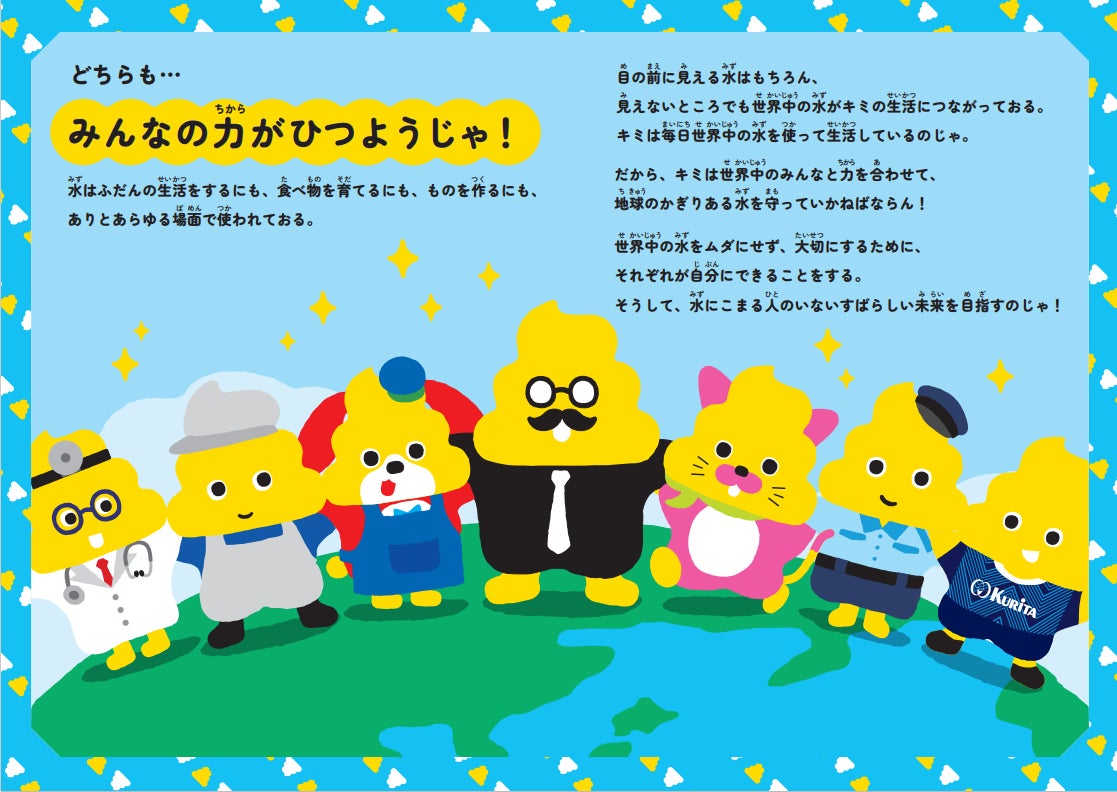 「クリタ×うんこドリル 水と生活」は水の大切さとともに水の問題が日本だけでなく世界と関係していることや、どうすれば水を大切にできるのかなどを、次世代を担う子どもたちに知ってほしいという想いから、累計1,000万部を突破し小学生に圧倒的な認知を誇る「うんこドリル」シリーズとクリタがコラボして制作した冊子です。