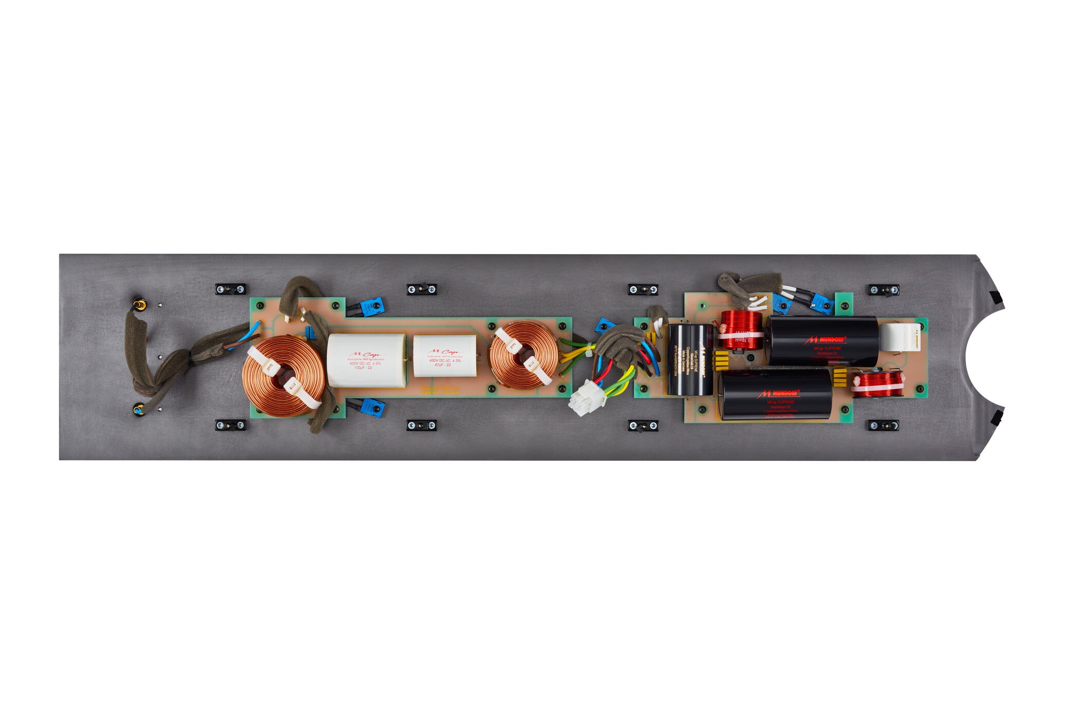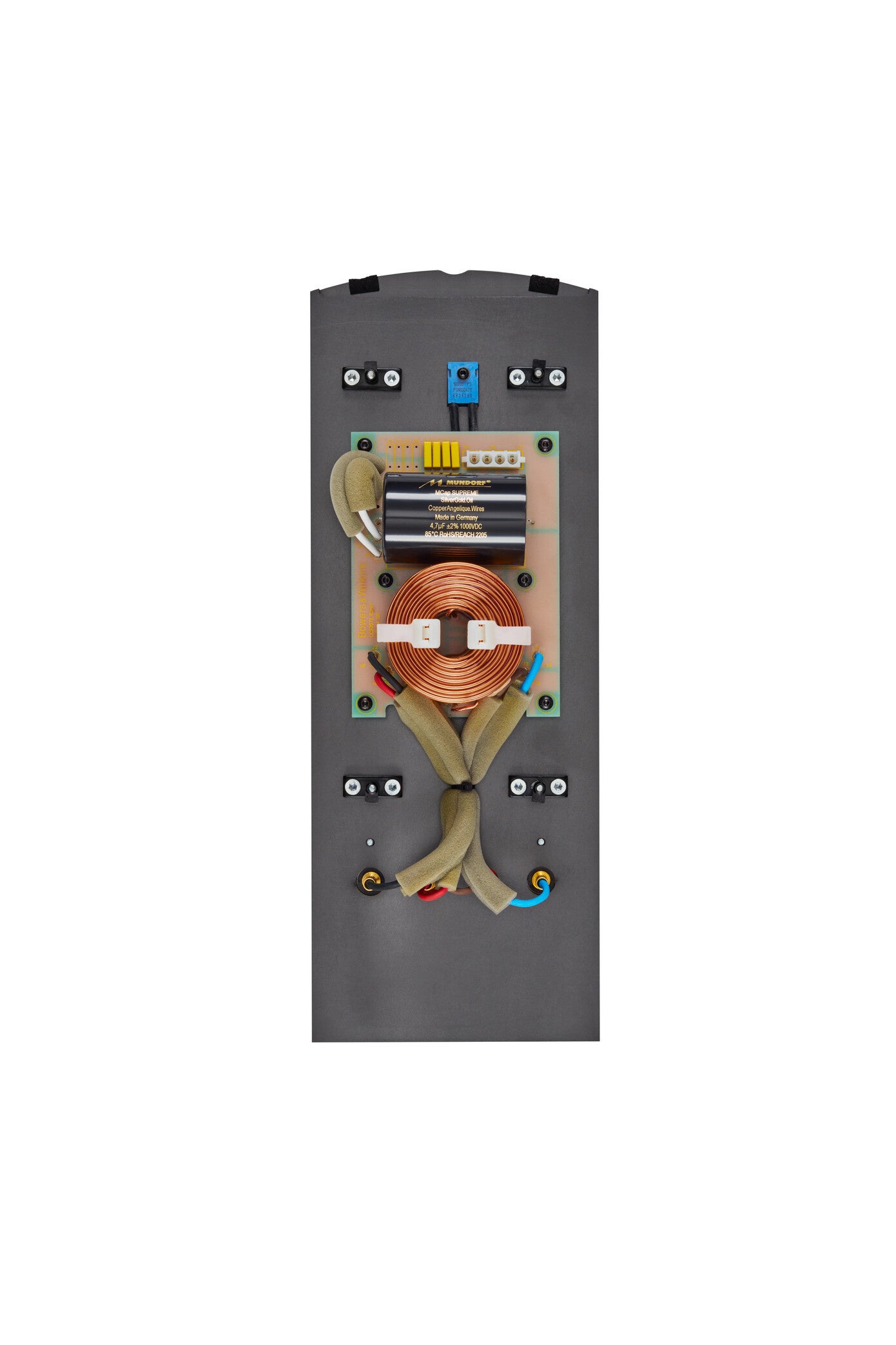 801 D4 Signatureは、近年のSignatureモデルと同様の手法でクロスオーバーネットワークにも慎重な改良が加えられています。バイパスコンデンサーのアップグレードと使用個数の増加によってサウンドの透明感がさらに高めらました。そして最後に、801 D4 Signatureは、Bowers & Wilkinsのラウドスピーカーが提供する素晴らしい高音域のクオリティをさらに高めるために、FEA(有限要素解析)によって最適化された新しいデザインのトゥイーター・グリルメッシュを導入しています。この新しいメッシュは、開口率と剛性のバランスの最適化をさらに突き詰めたもので、これまで以上に開放的で、解像度と空間表現の両方に改善をもたらしています。