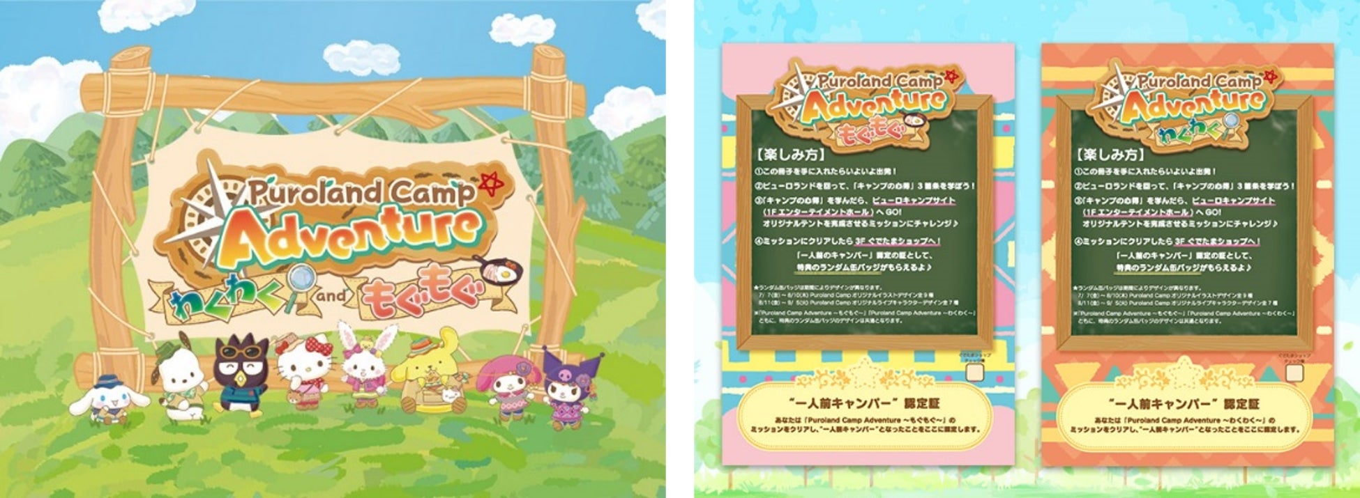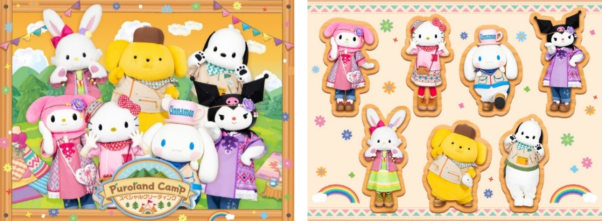 ▲(左)Puroland Campスペシャルグリーティングビジュアル(右)キャンパーの装いをしたキャラクターたち