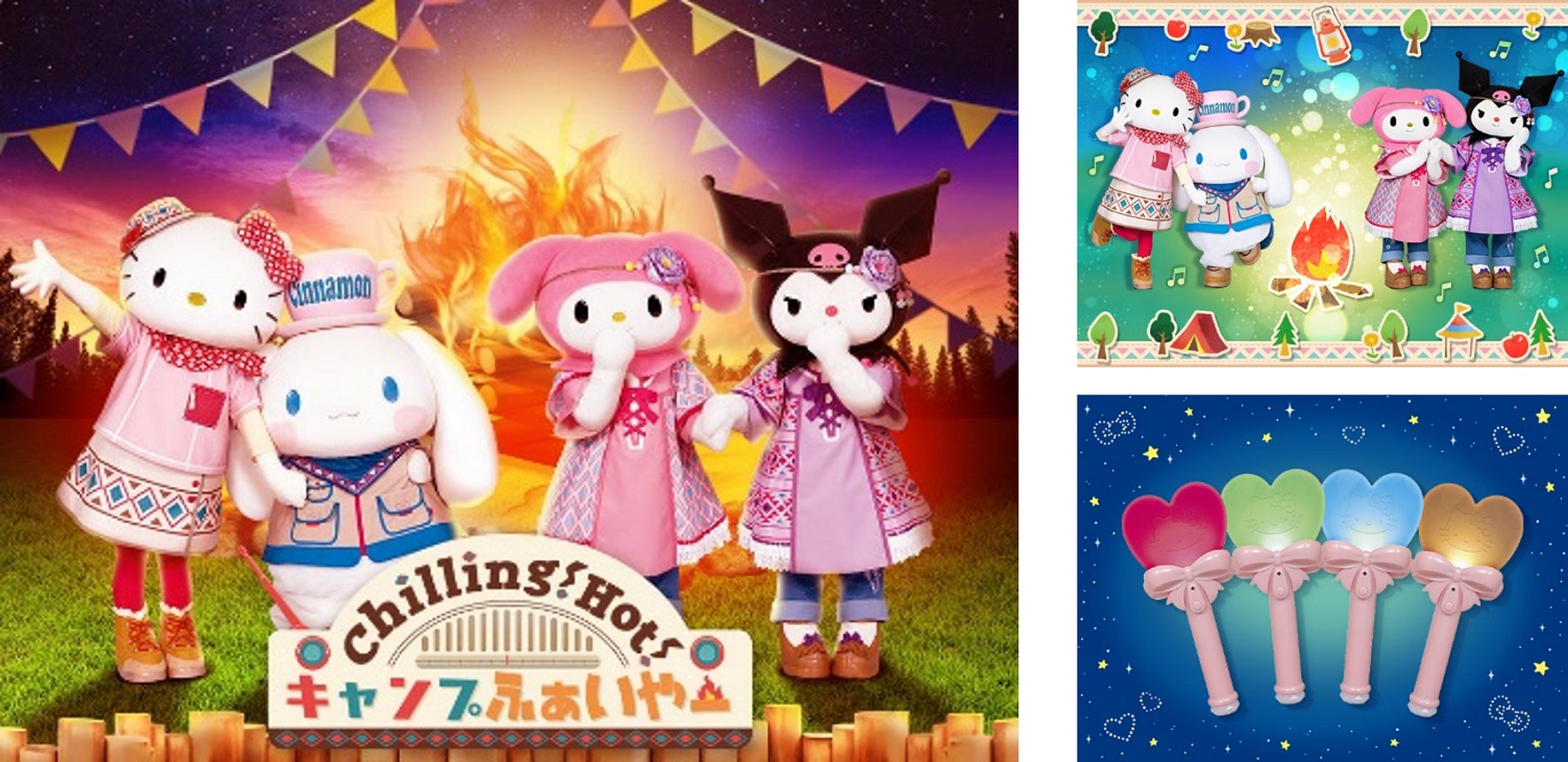 ピューロキャンプサイト内では、新作ショー「Chilling!Hot!キャンプふぁいやー」を上演。ハローキティとシナモロール、マイメロディとクロミがそれぞれペアで日替わりで登場します。