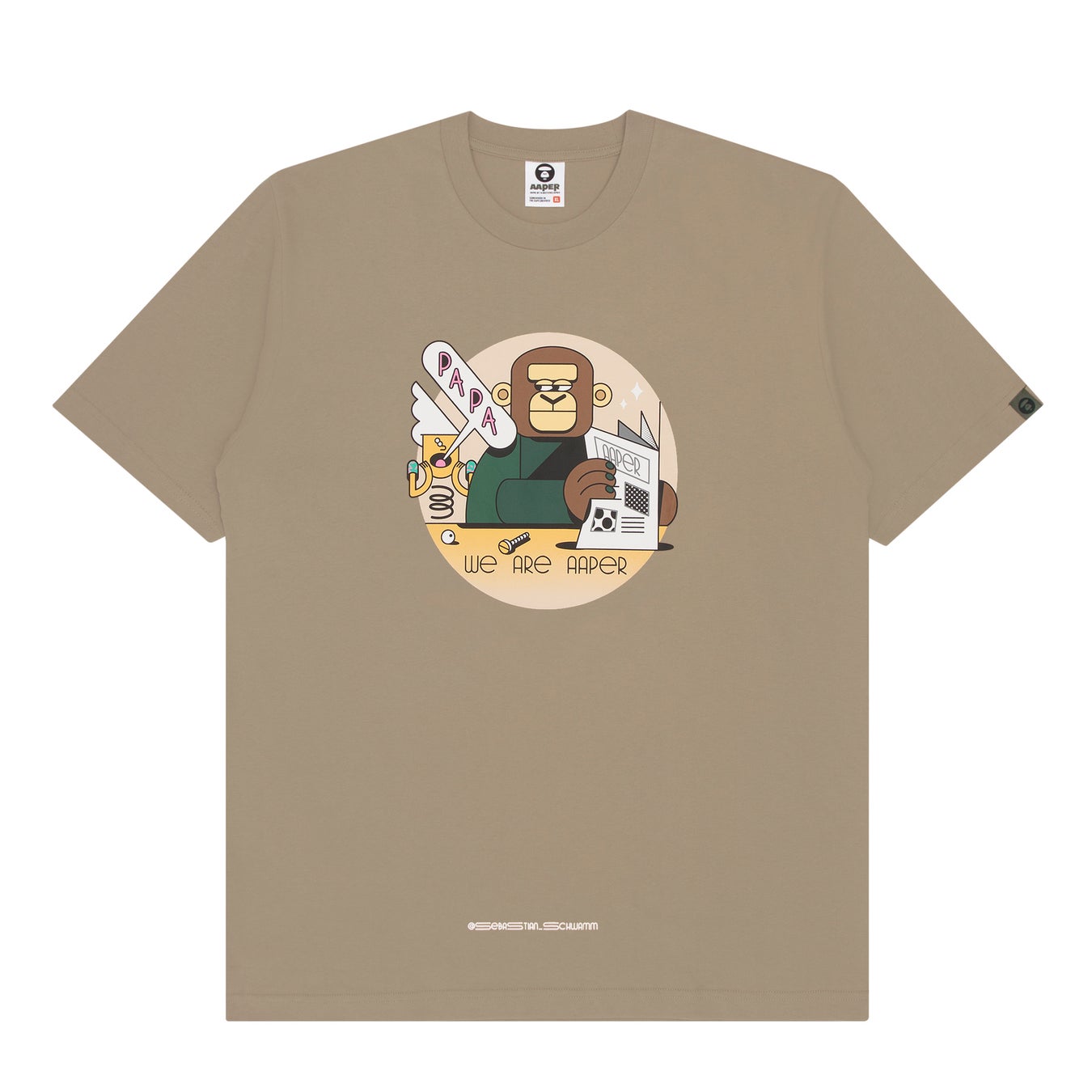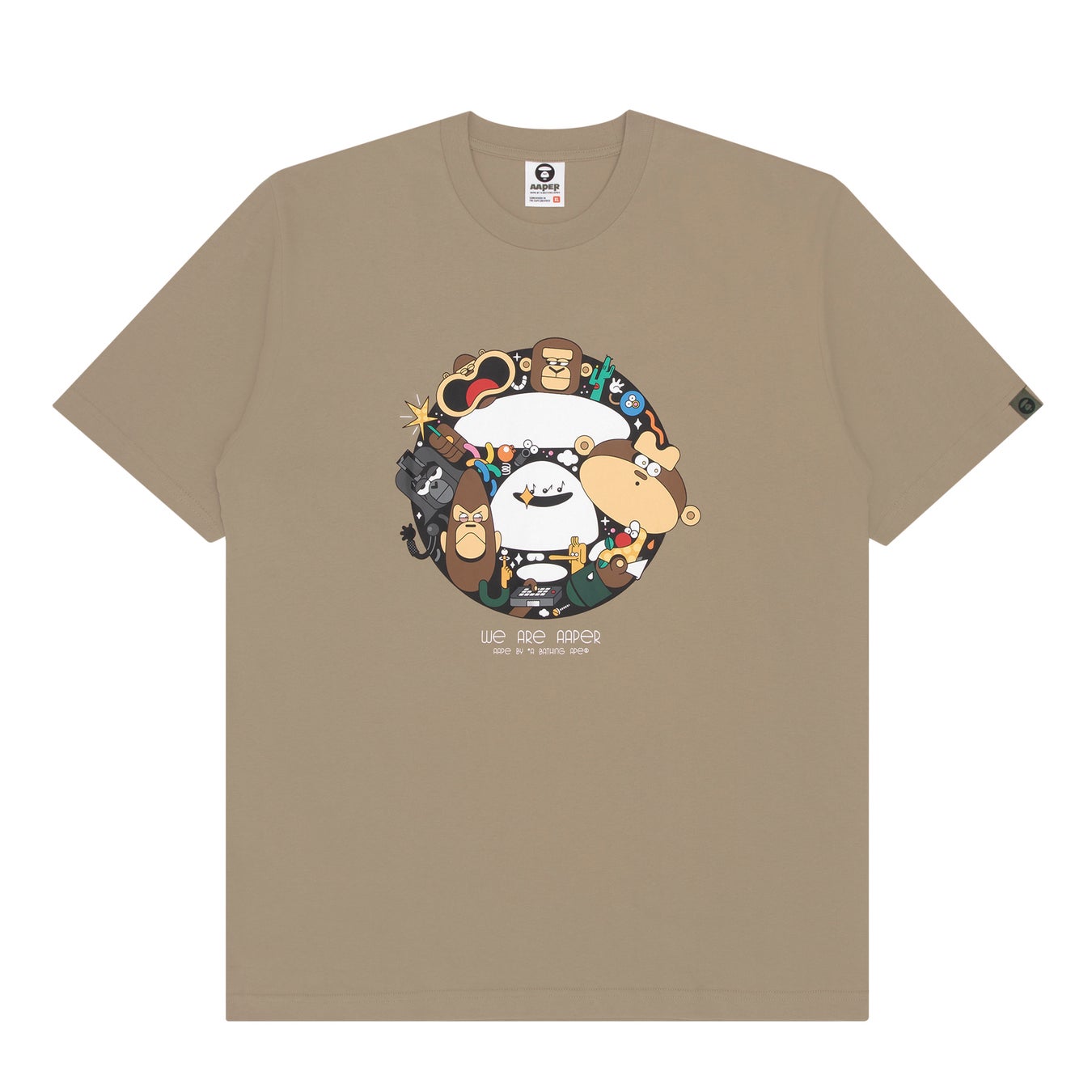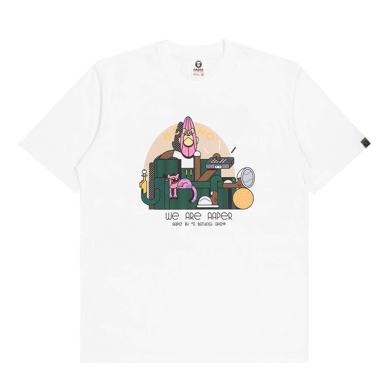 AAPEのアイコンであるMOONFACEロゴをはじめとするクラシックな要素を、SEBASTIANが鮮やかなカラーと擬人化されたデザインでパーティーシーンを彷彿とさせるデザインに仕上がりました。「WE ARE AAPER」の文字が入り、 都会的な雰囲気が漂うコレクションとなっています。