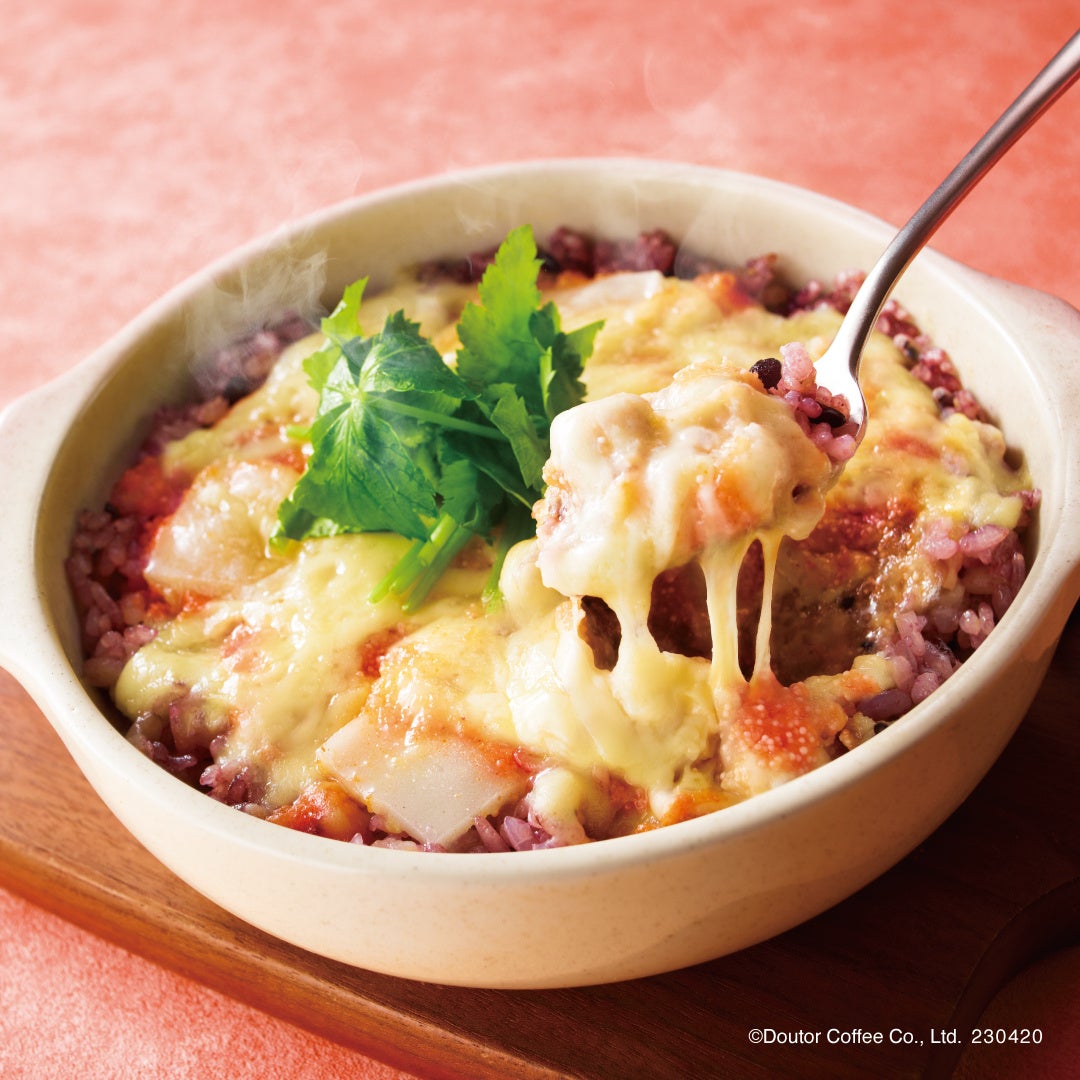 明太子とお餅の和の食材をメインに仕立てた「明太もちチーズの和風ドリア」、好評のオムドリアをリニューアルした「チキンとラタトゥイユのオムドリア」を発売いたします。