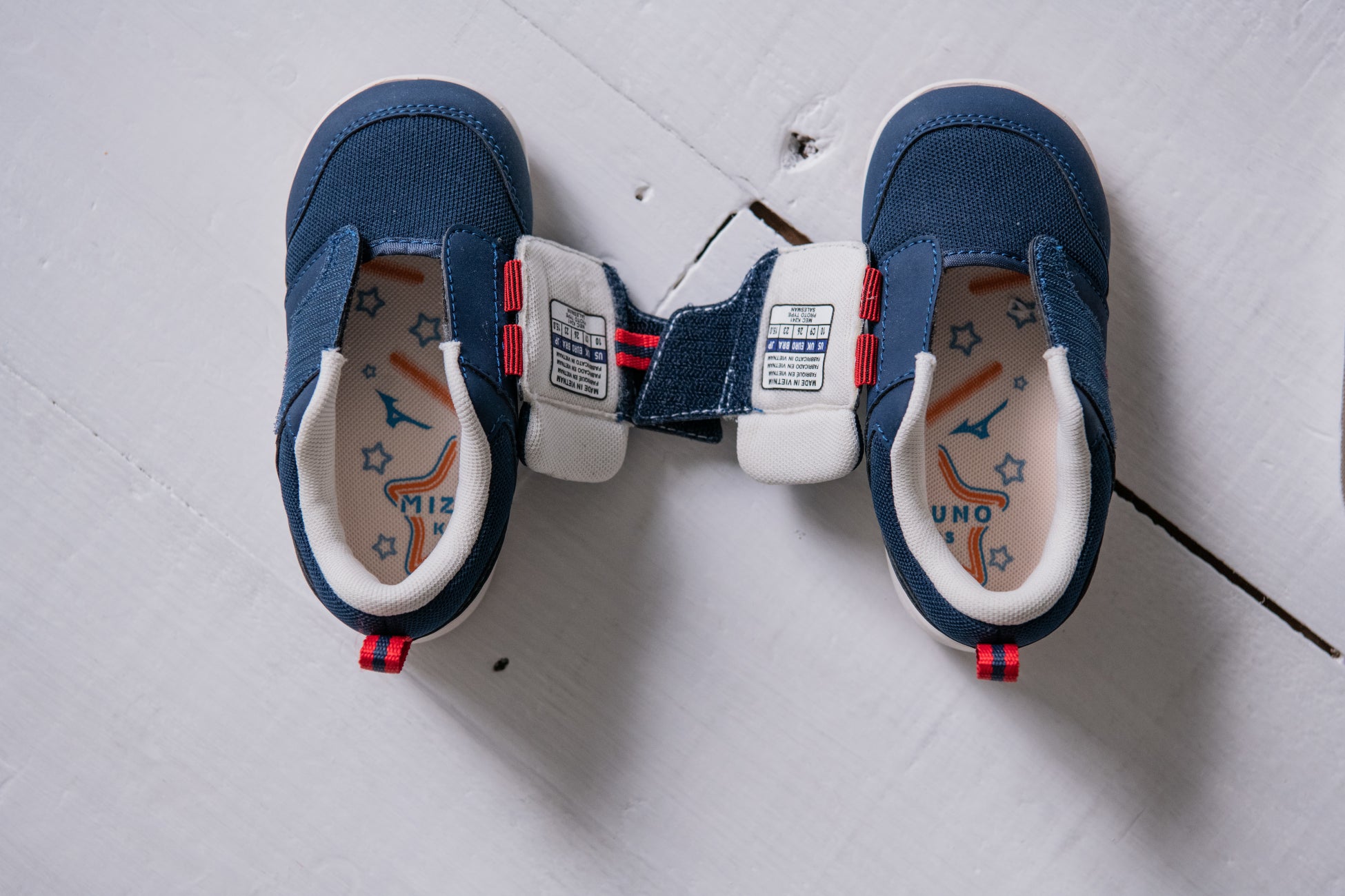 「ミズノ プレモア」シリーズは、子どもの「やってみたい・できた」という気持ちを引き出し、子どもの可能性を伸ばすことをコンセプトにしています。今回発売する「ミズノ プレモア2」では、特許取得のミズノ独自のアッパー構造『ピットイン構造』、独自のソール設計『ミズノ プレモアソール』はそのままに、ベルトとアッパー部のテープを合わせることでベルトを真っ直ぐきれいに締めやすいデザインや、左右をそろえると星になるインソールデザインを採用しています。それによって、子どもが一人でも左右を間違えることなく、真っ直ぐきれいに靴を履けるような後押しをします。