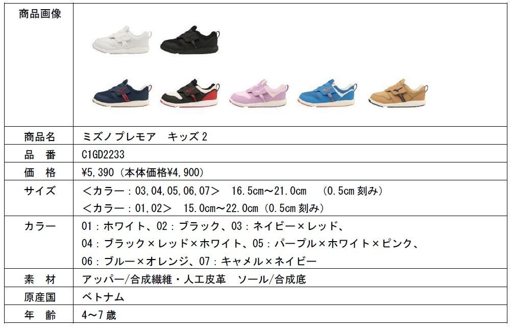 ミズノは、子どものできた!を引き出すキッズシューズ「ミズノ プレモア2」シリーズを全国のミズノキッズシューズ取扱店、ミズノ公式オンラインで8月中旬に発売します。
