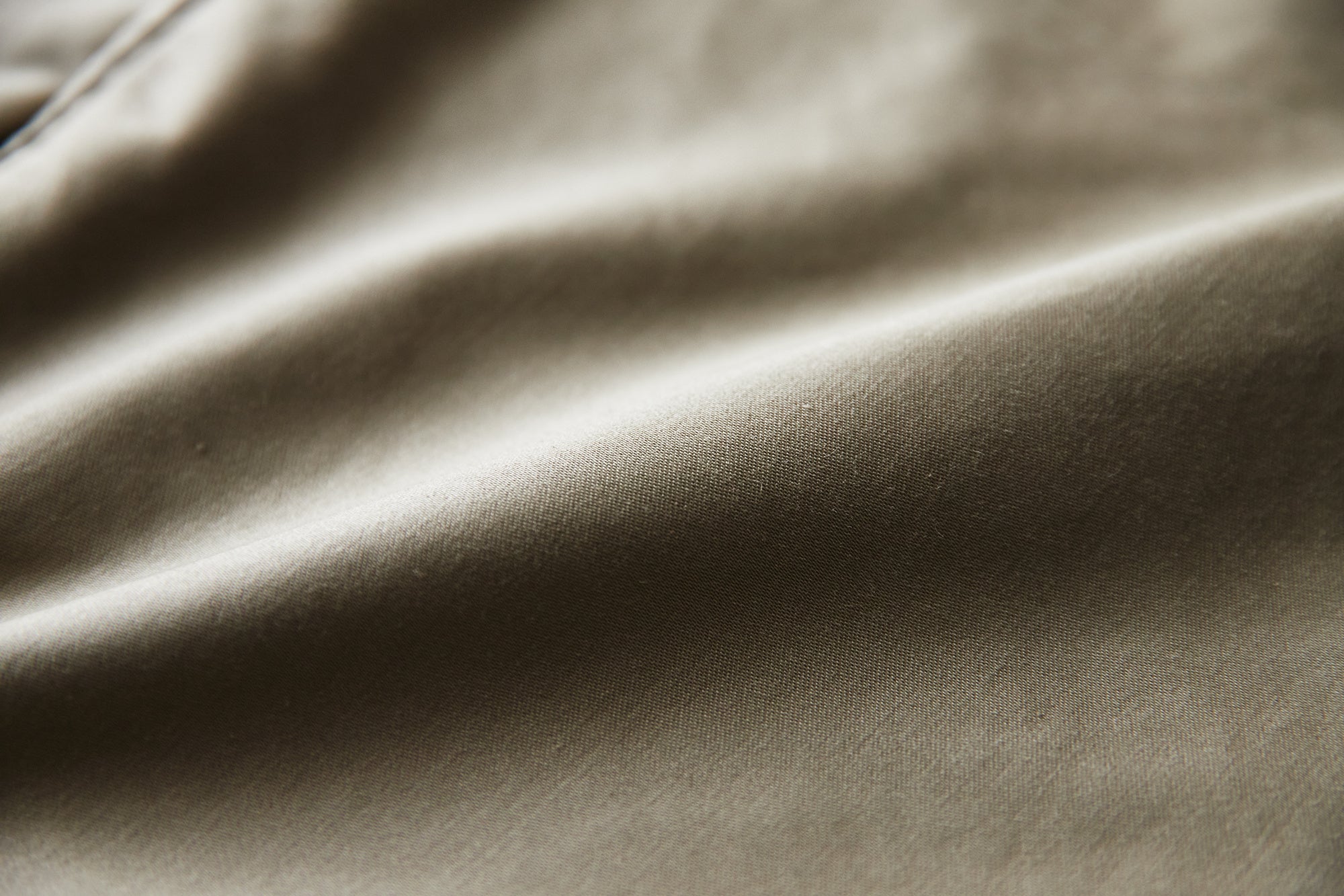 生地には、上質で高級感のある高密度モールスキンを採用。イギリスのカントリーシーンにも由来する生地で、起毛感や重量感のあるものが一般的ですが、ギザコットンを採用することで白に近いベージュの風合い、毛羽も少なく、とてもしなやかな風合いに。上品な表情を実現しています。秋冬に適したウェイト、ハリ感を備えつつ、打ち込みが良くしっとりとした着心地と、経年変化が楽しめます。