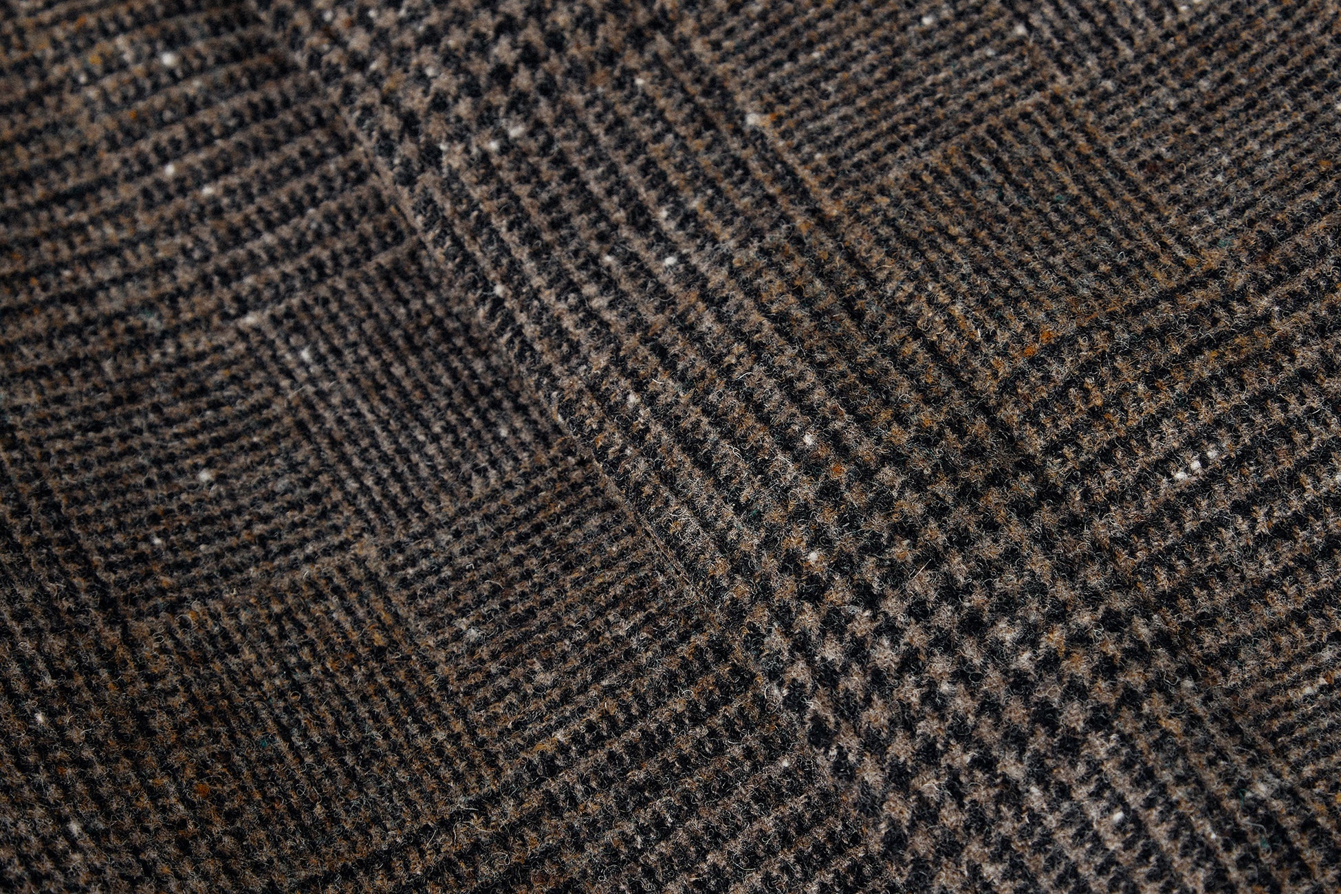 生地には英国羊毛を使用したカレドアー オリジナルのクラシカルな大柄チェックが採用されています。1960年〜1970年代のオーセンティックな生地をイメージし、ションヘル織機で糸にストレスをかけず、糸本来のしなやかさが残る素材感に仕上がっています。英国羊毛ならではのネップがあるところに、さらに微起毛を加えたことで、カレドアー独特の風合いを楽しませてくれます。