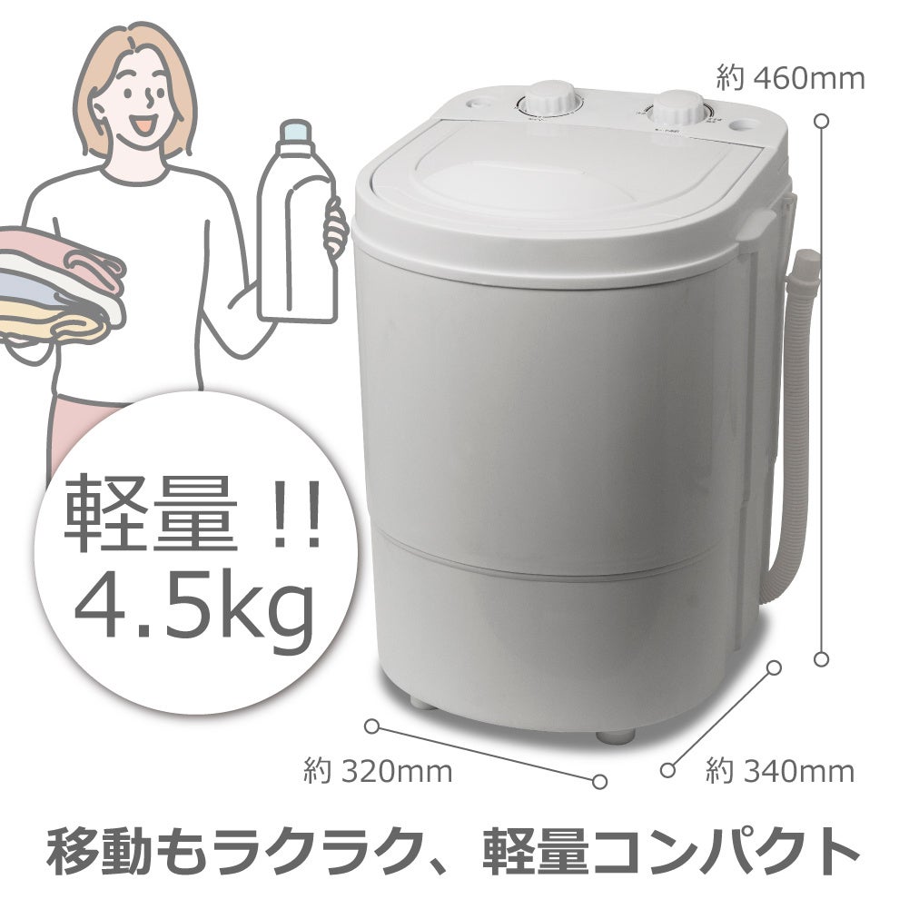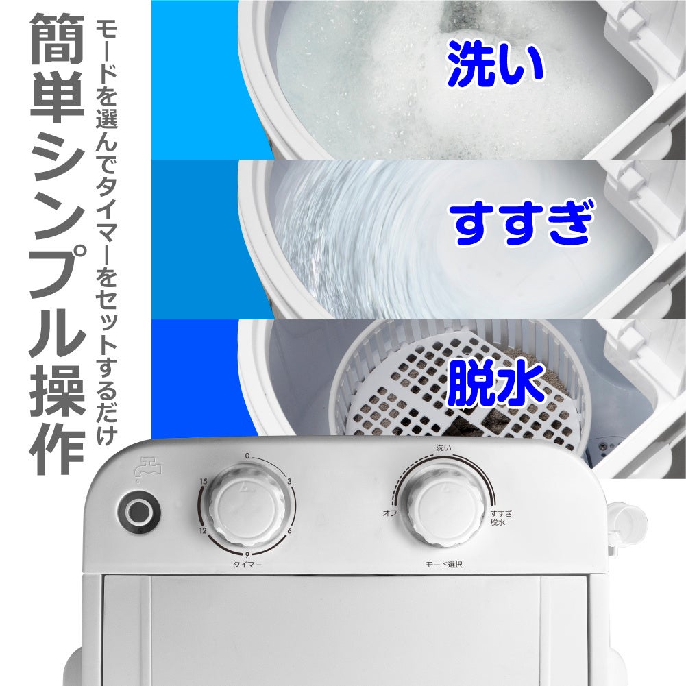 洗い・すすぎ・脱水の3種類のモードを搭載。タイマーは最大15分。