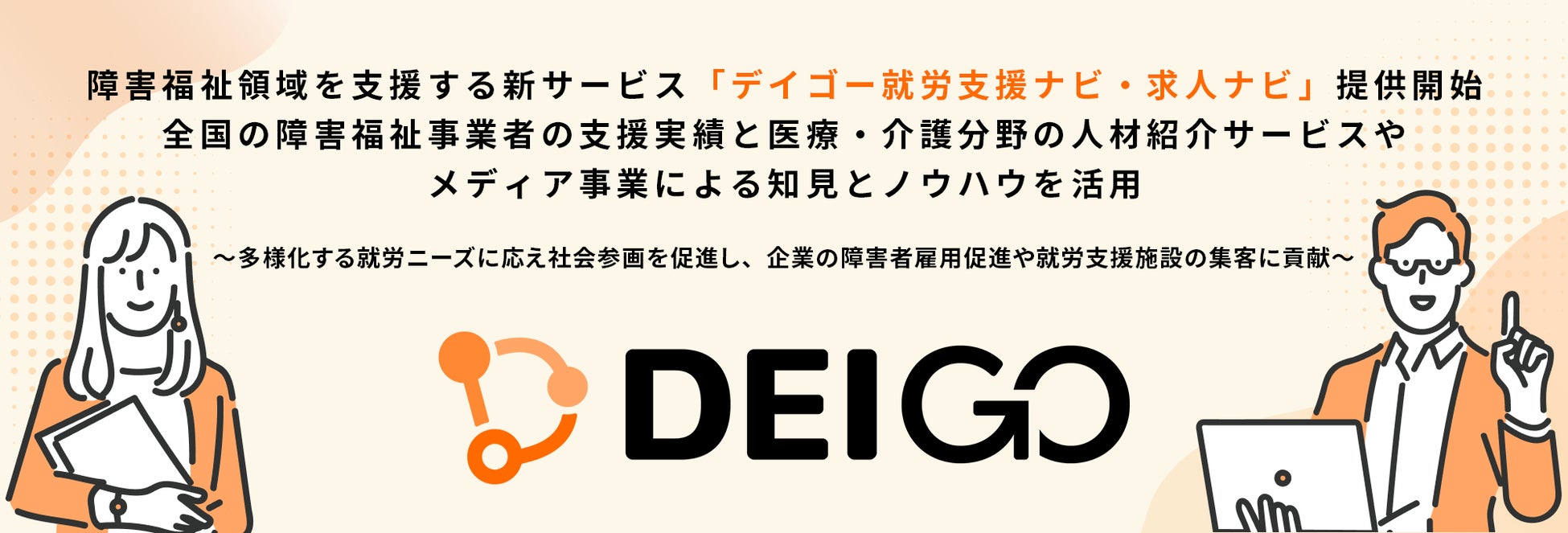 障害福祉領域を支援する新サービス「デイゴー就労支援ナビ・求人ナビ」提供開始。全国の障害福祉事業者の支援実績と、医療・介護分野の人材紹介サービスやメディア事業による知見とノウハウを活用