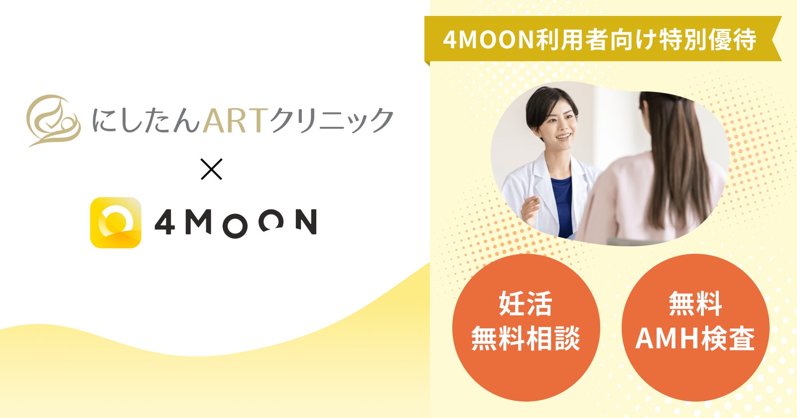 「4MOON」×「にしたんARTクリニック」卵子の数を確認できる簡易検査(AMH検査)と妊活・不妊症相談窓口を無料提供スタート