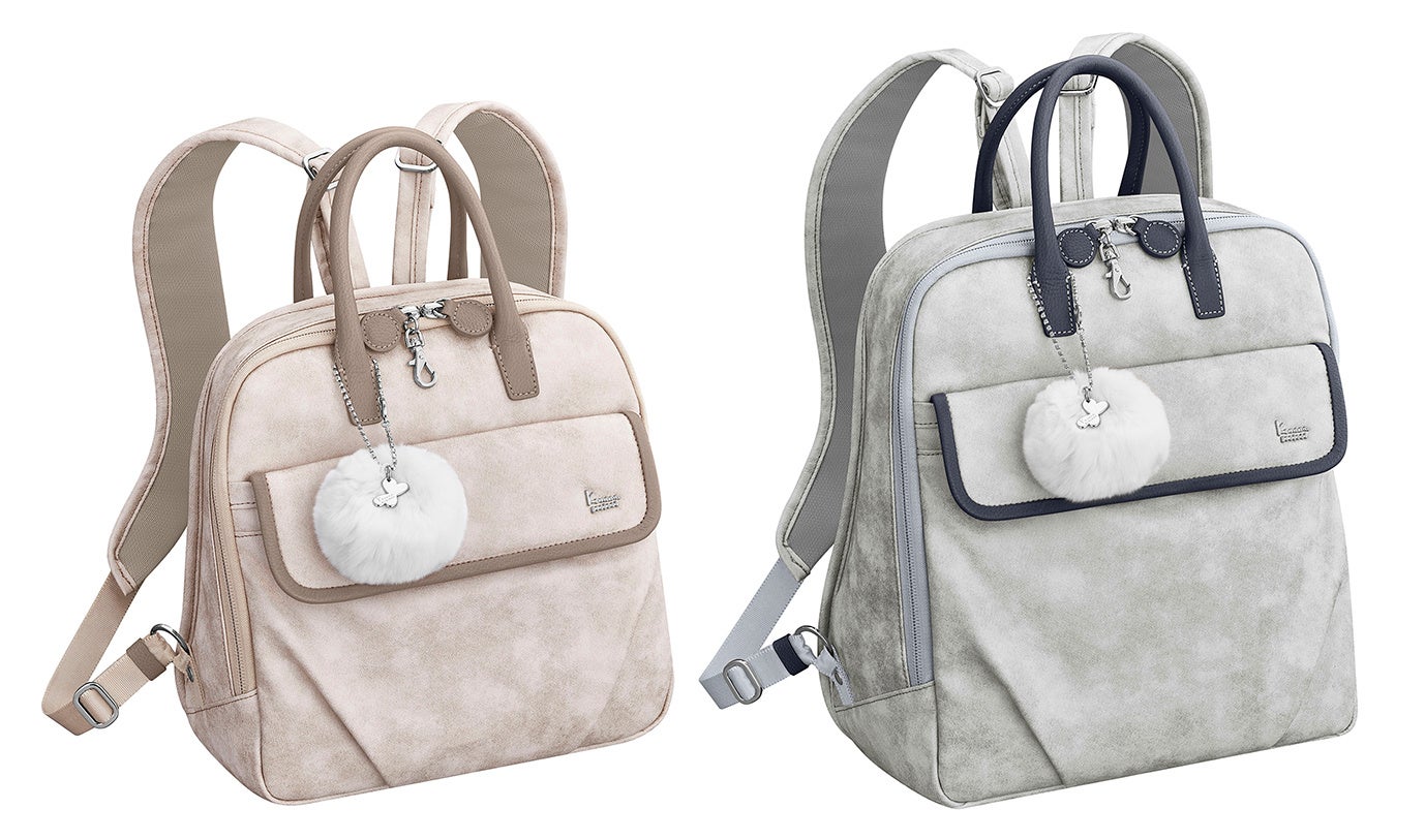「PJプレミアム フォウ レザー」は、エレガントなコーディネートに合わせて背負える、大人の女性のためのタウンリュックです。スッキリしたデザインのボディにニュアンスのあるフェイクレザーを、お守りチャームにリアルファーを使用し高級感を演出しました。革製の2本手ハンドルが付いているので、腕に掛けてハンドバッグ風に持つこともできます。身軽で快適におでかけを楽しめるよう、「カナナプロジェクト」らしい機能や背負い心地にもこだわりました。