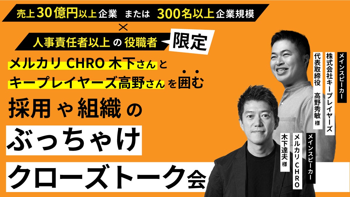 メルカリCHRO 木下氏とキープレイヤーズ 高野氏をゲストとしてお招きし、人事責任者、経営者向けのイベント「ぶっちゃけクローズトーク会」を開催します。