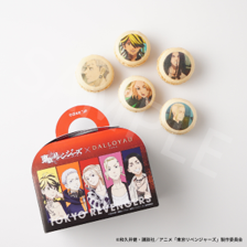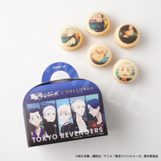 Cake.jpと東京リベンジャーズのコラボ第6弾として登場するのは、キャラクター5人の「プリントマカロン」です!本商品にはパティスリーやパンなどを幅広く提案し、フランスで美食の名店として知られている「DALLOYAU(ダロワイヨ)」のマカロンを採用しています。外側がカリっとしていて中は柔らかく、香り豊かでとろけるようなマカロンは絶品です。マカロンの表と裏にはキャラクター毎に高校時代と少年時代のビジュアルが描かれ、ファンにはたまらない商品となっております。お買い求めいただいた方にはノベルティとして、キャラクターの缶バッジをつけてお届けいたします。