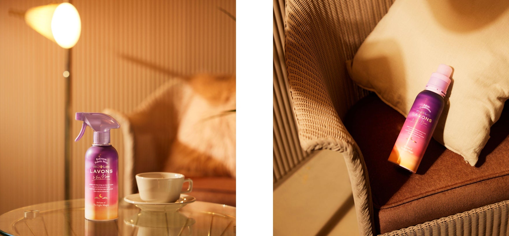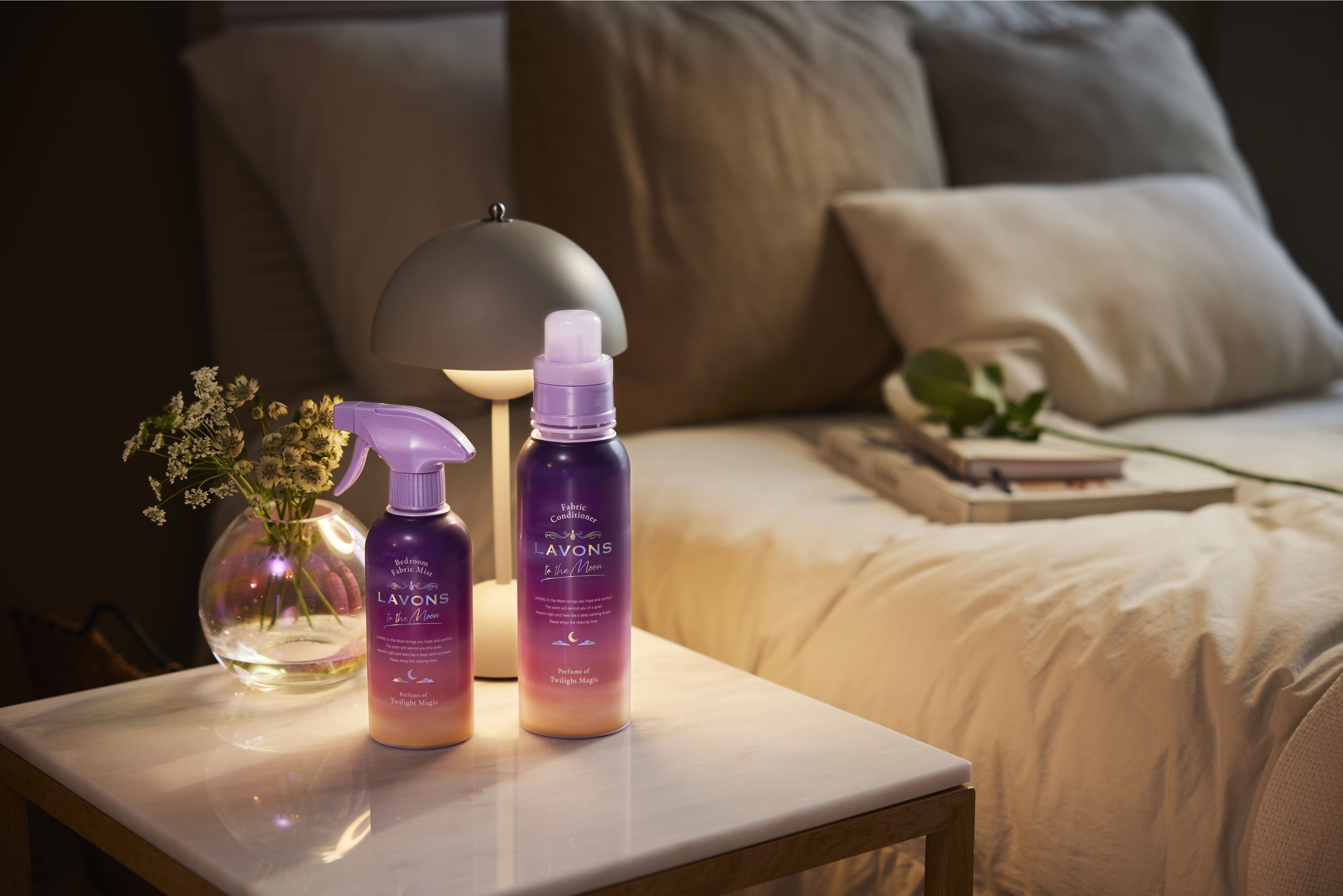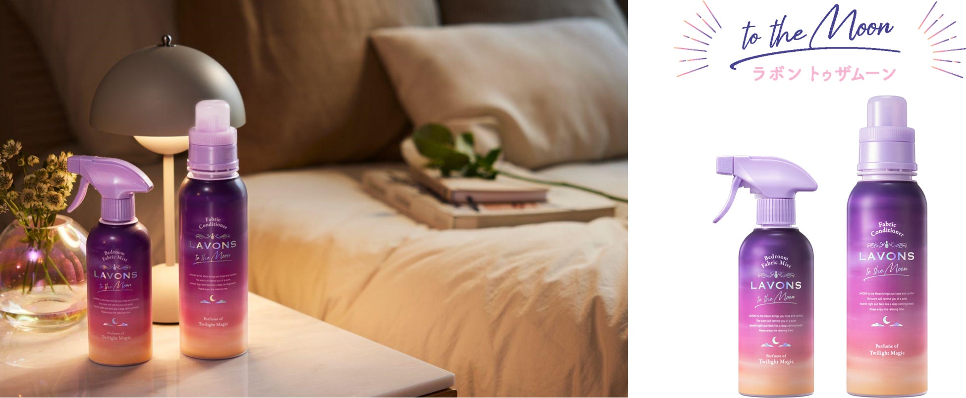 第1弾はやさしいシトラスとクリーンなアンバーが特徴的な、透明感あふれるクリーンフローラル「トワイライトマジックの香り」。ベッドルーム&ファブリックミスト、柔軟剤と詰替えを展開。